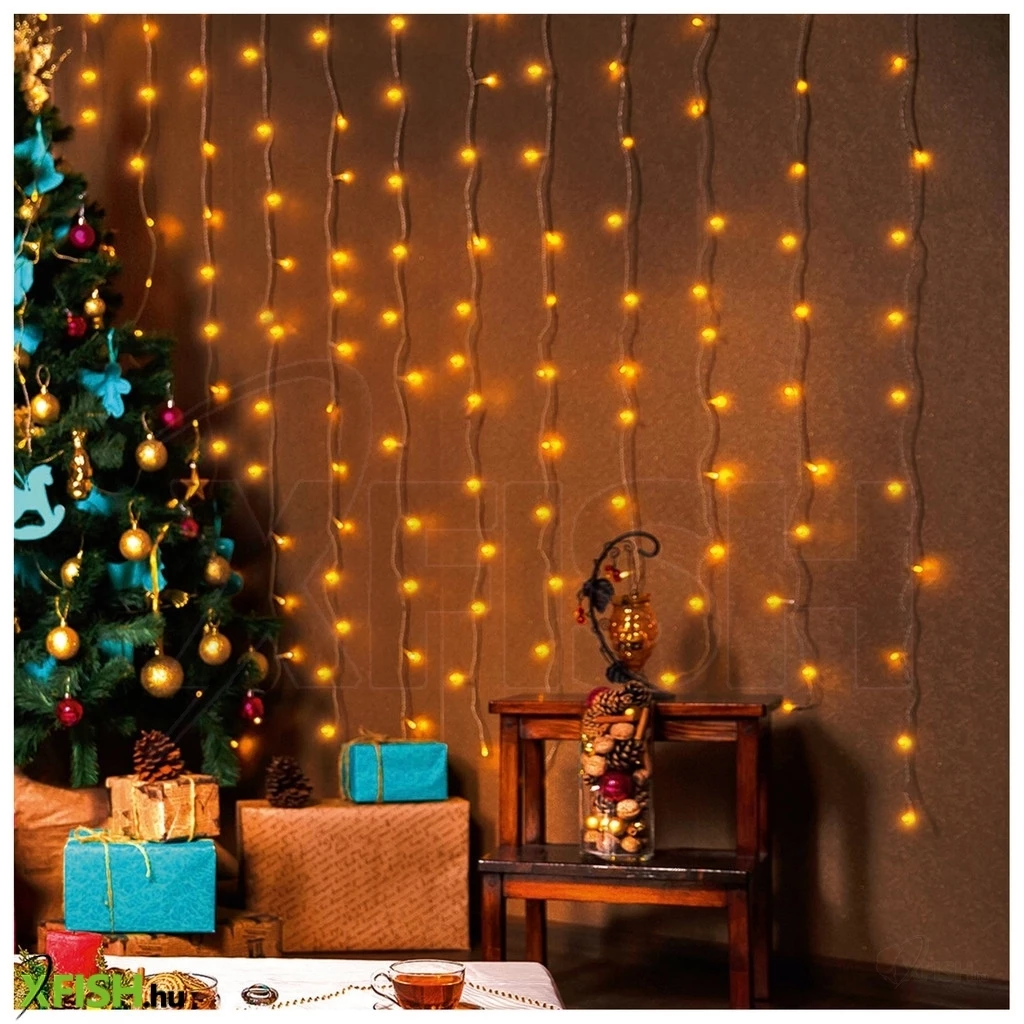 Dekorációs termékek home kin 168c/ww led-es fényfüggöny, 1,2x1,4 M / 168 db melegfehér led, fehér vezeték, állófényű, hálózati adapter, beltéri kivitel