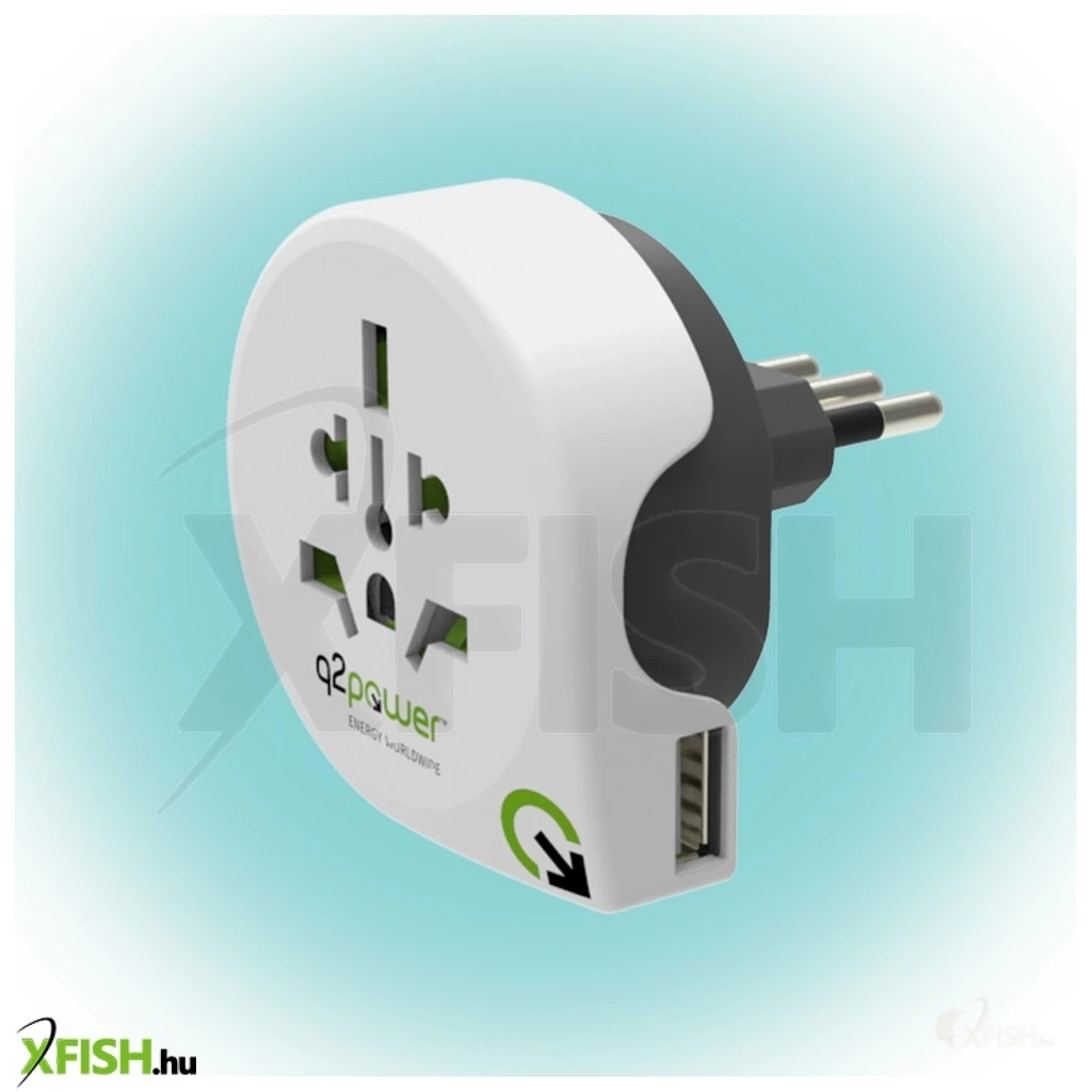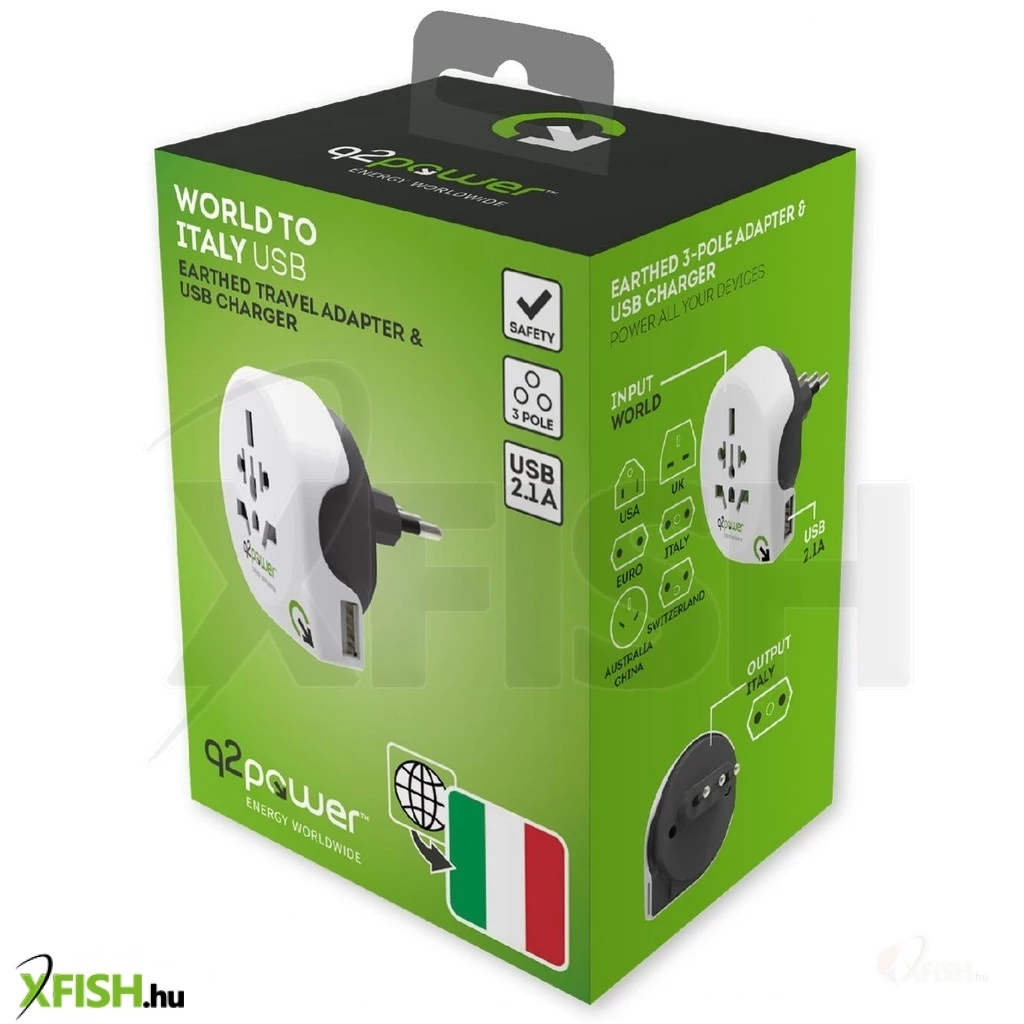 Q2power 1.100190 utazóadapter, world to italy usb, indulási ország aus/china, it, uk, ch, brazil, usa, euro, célország it, USB port