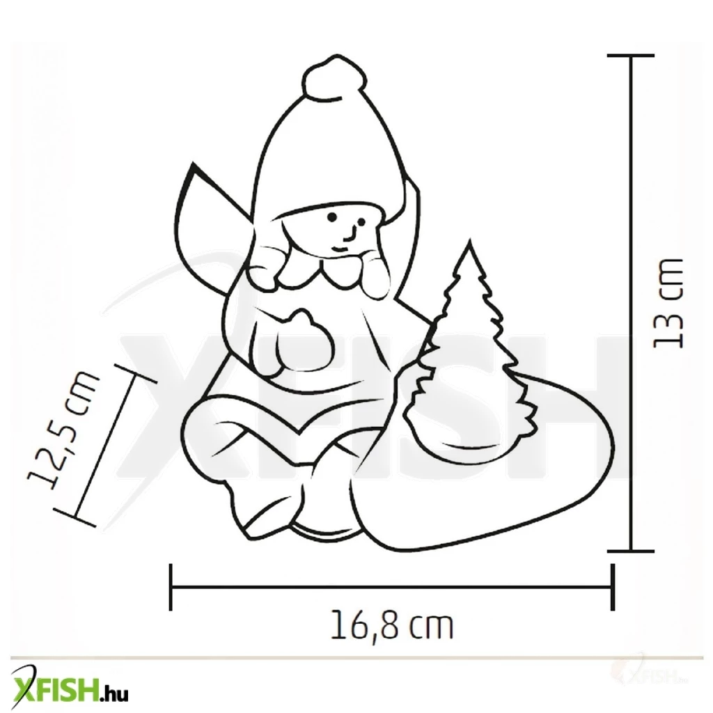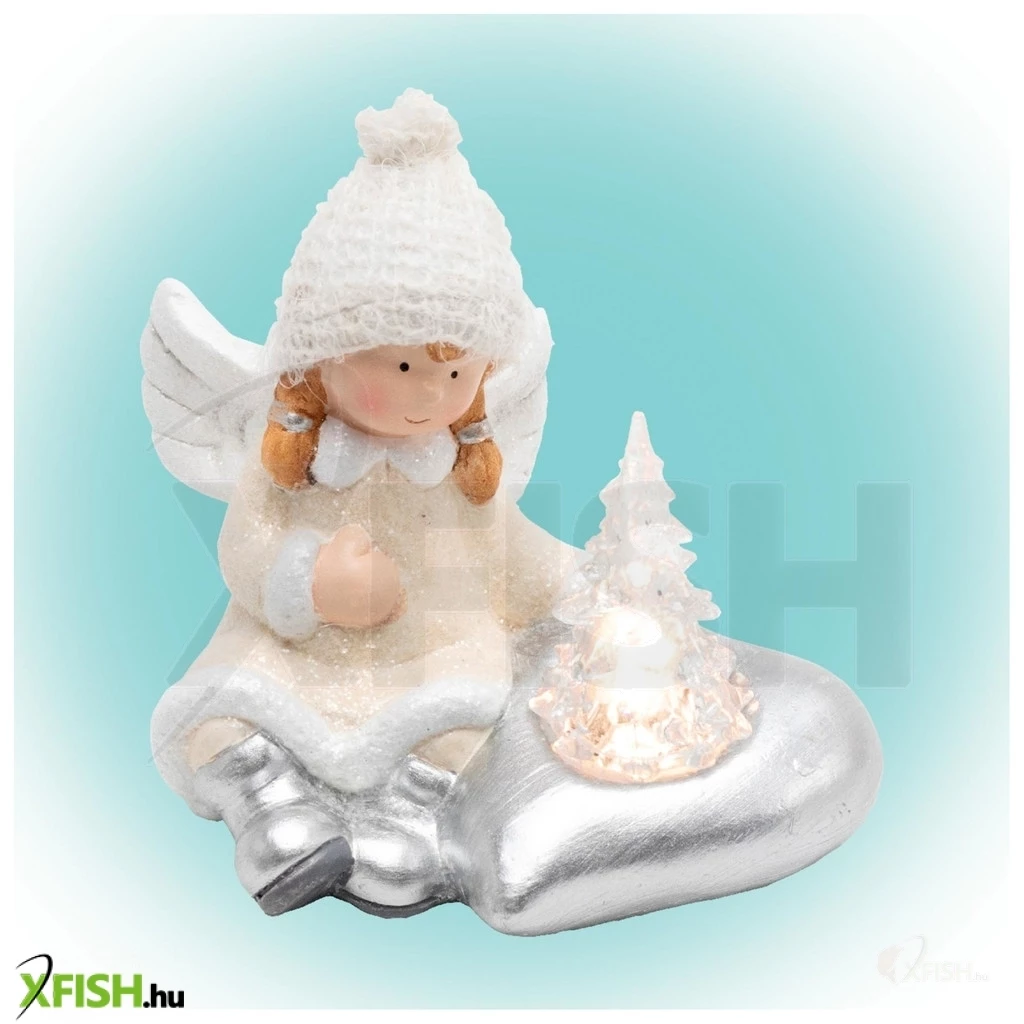 Ez a beltéri kivitelű angyal figura egy világító fenyővel van díszítve, amelyet egy melegfehér LED világít meg. Az aprólékosan kidolgozott kerámia alapanyag biztosítja, hogy a dísz stílusos és tartós maradjon, miközben finom, ünnepi fényt áraszt. Az angyal dekoráció kiváló választás asztali vagy polcra helyezett dekorációként, és kellemes kiegészítője lehet bármely helyiségnek. A tápellátást 2 darab 1,5 V-os (lr44) elem biztosítja, melyek a csomagban megtalálhatók, így az angyal azonnal használatra kész.