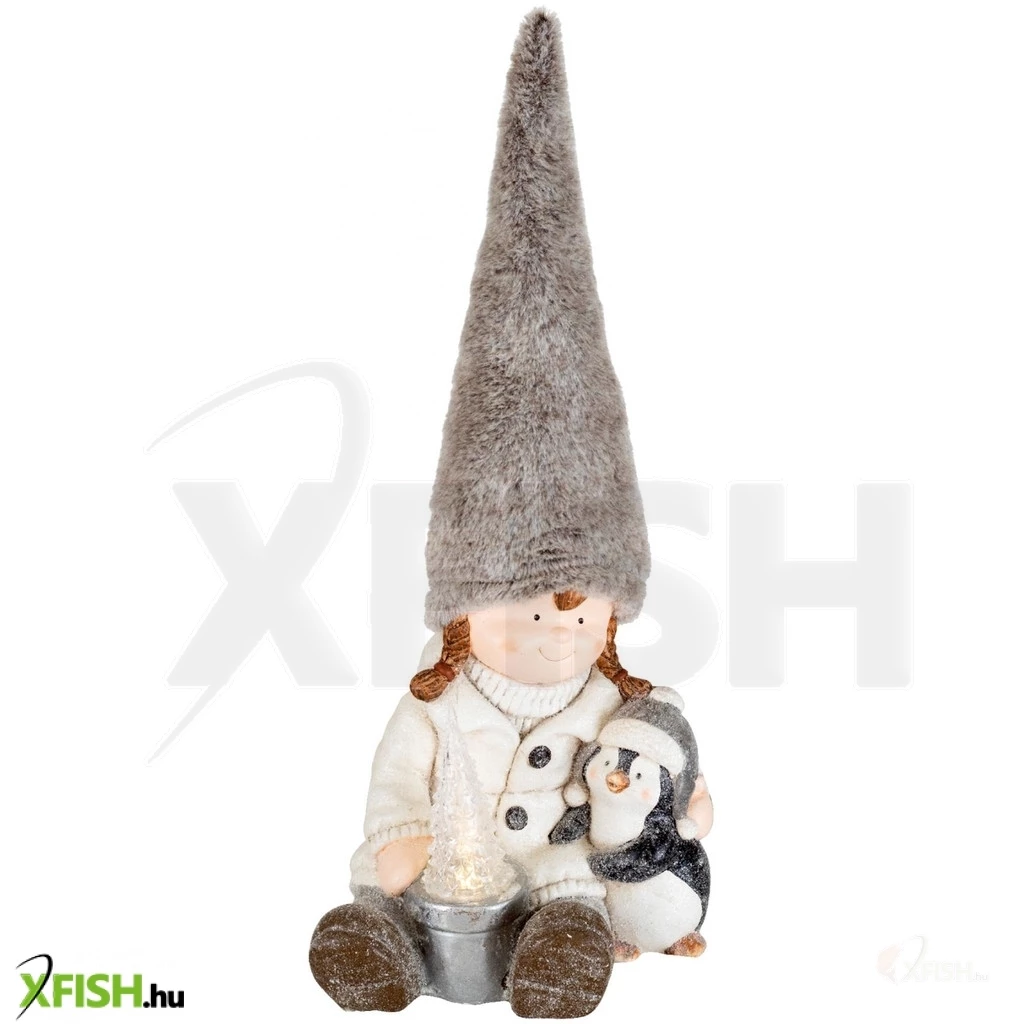 Dekorációs termékek home kdc 25 ülő kislány pingvinnel kerámia-plüss dekoráció, 1 db melegfehér LED