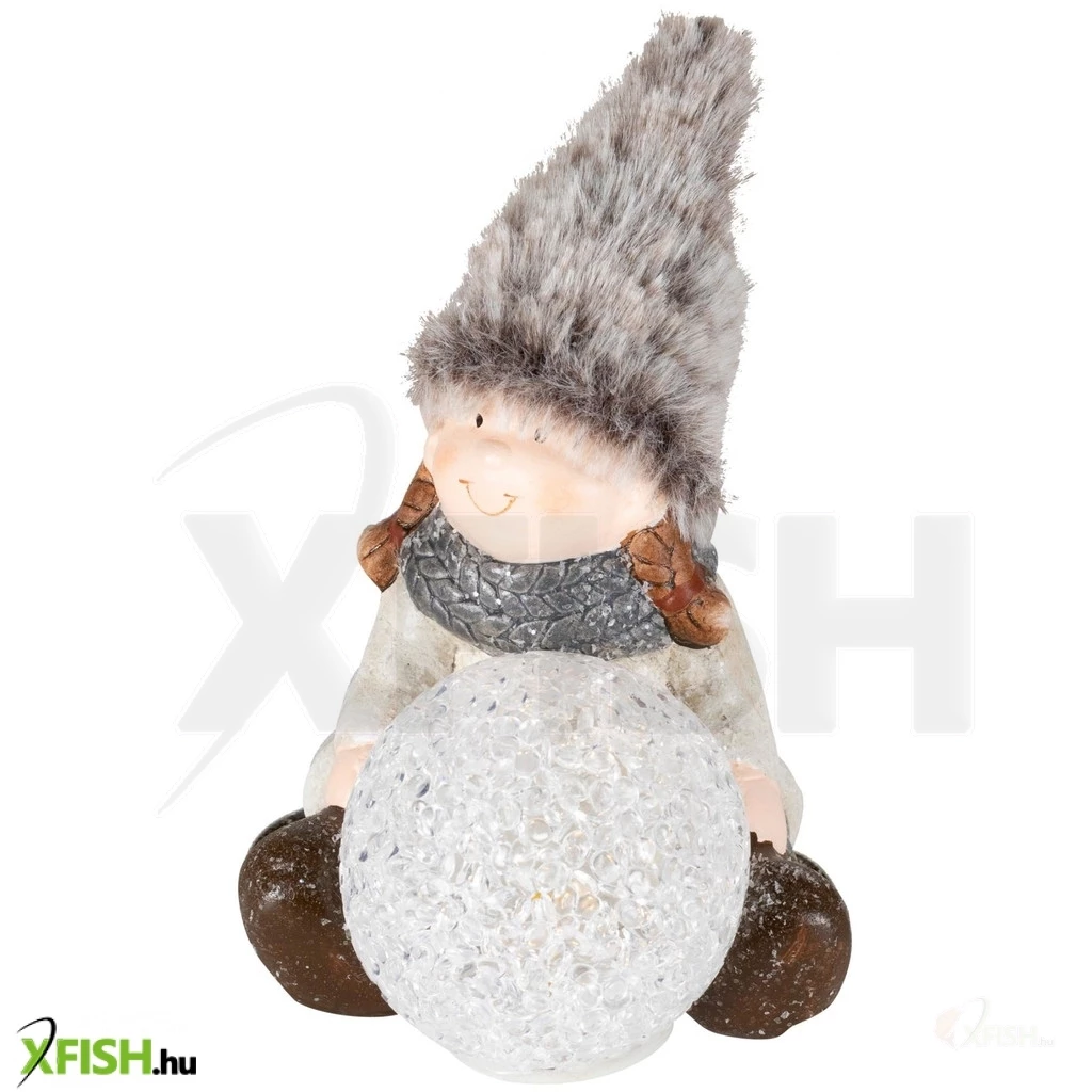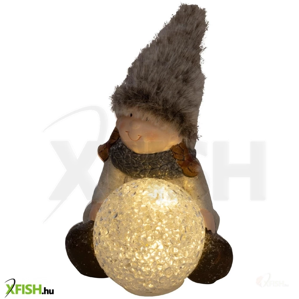 Ez a bájos ülő figura világító EVA gömbbel van felszerelve, amelyben egy melegfehér LED gondoskodik a kellemes, nyugtató fényről. A figura részletgazdag kidolgozással készült kerámia alaptesttel és puha plüss elemekkel, így nemcsak elegáns, de barátságos hangulatot is áraszt. Kompakt mérete (10 x 10 x 10,5 cm) miatt könnyen elhelyezhető asztalon, polcon vagy ablakpárkányon. A dísz működéséhez 2 darab 1,5 V-os (lr44) elem szükséges, amelyeket a csomag tartalmaz, így azonnal használatra kész.
