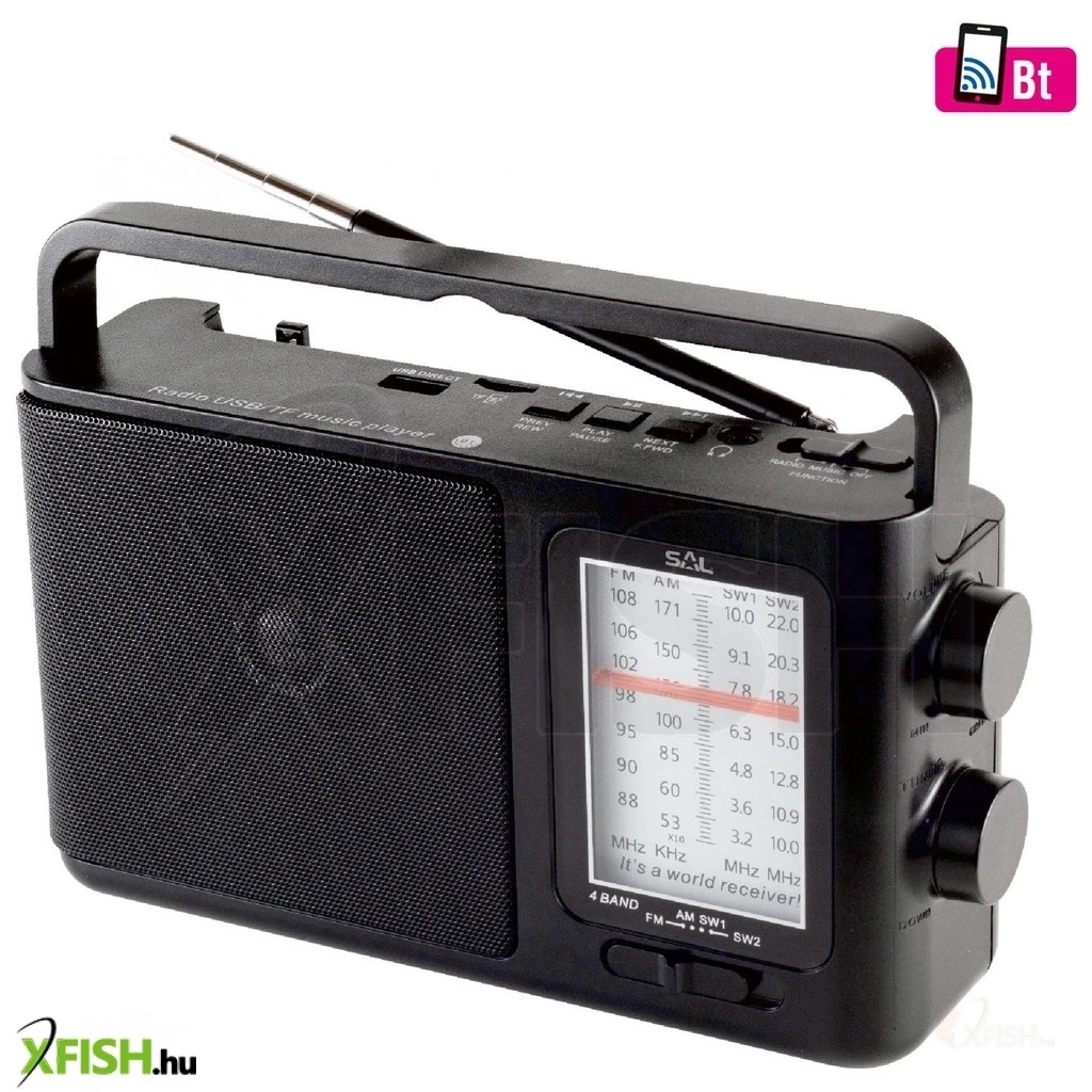 Egy rádió, amely a klasszikus és a modern technológiát is ötvözi- A Sal RPR 7B táskarádió tökéletes választás mindazok számára, akik a hagyományos rádiózás élményét szeretnék modern funkciókkal kiegészíteni. Ez a 4 az 1-ben készülék Bluetooth kapcsolattal, USB és microSD lejátszási lehetőséggel, valamint 4 sávos rádióval (am-fm-sw1-sw2) kínál sokoldalú megoldást minden helyzetben.