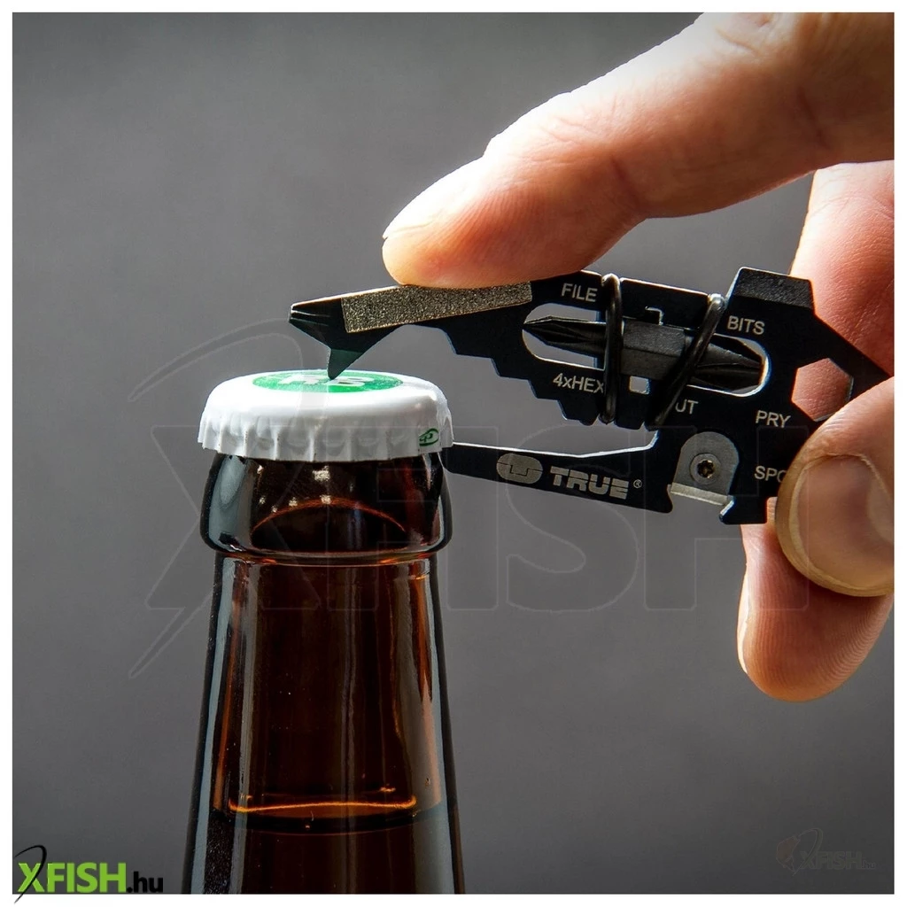 A True Utility Fishface tu206k egy kivételesen sokoldalú eszköz, amely 18 különböző funkciót ötvöz egyetlen, kompakt kialakításban. Minden, amire szüksége lehet, megtalálható ebben az eszközben: karabiner, különböző méretű laposfejű és csillagfejű csavarhúzók, feszítő, küllőkulcs, biztonsági penge, több méretű csavarkulcs, sörnyitó, körömtisztító és reszelő. Ez a sokoldalúság teszi ideálissá mindenféle kültéri tevékenységhez, otthoni apróságokhoz vagy akár az autószereléshez is.