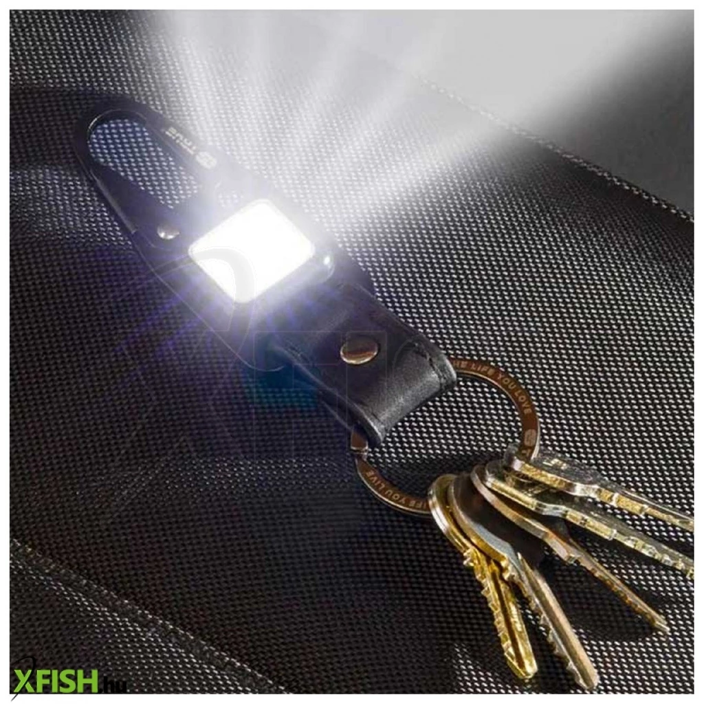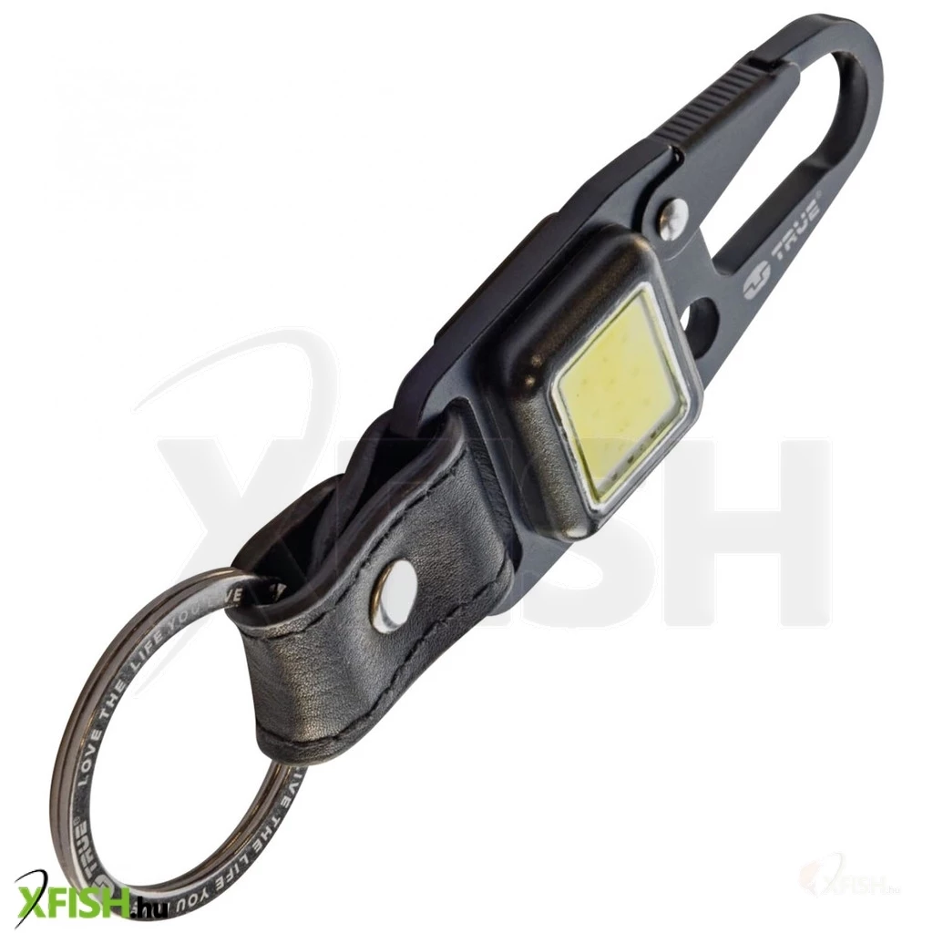 True utility cliplite, tu918, kulcstartó karabiner, tölthető lámpa, 4 funkció, 47 lm cob led, li-ion, marhabőr szíj, rozsdamentes acélváz