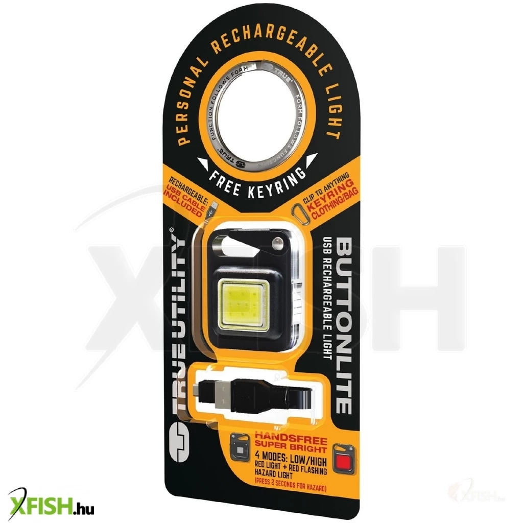 True utility buttonlite, tu919k, tölthető lámpa, 4 funkció, 47 lm cob led, li-ion, rozsdamentes acélváz