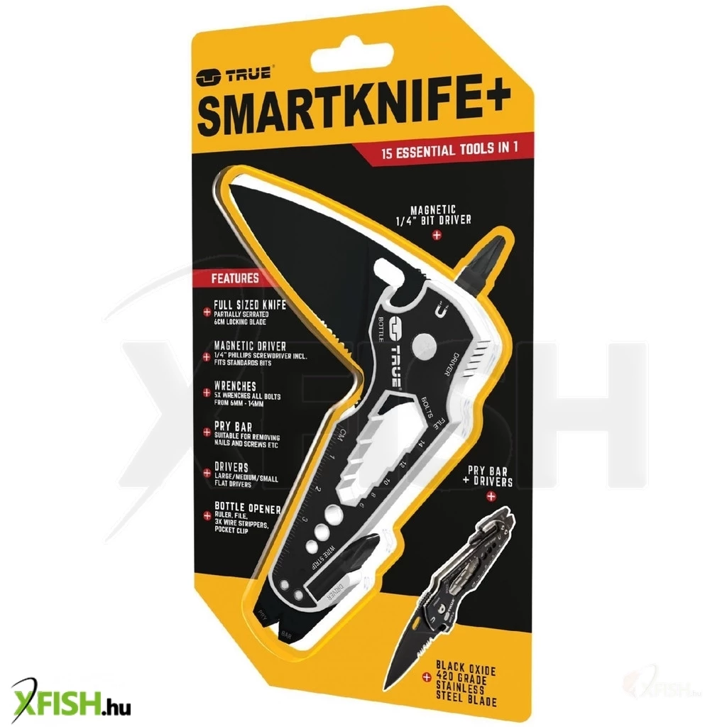 KategóriákKategóriákBarkácsolás, építkezés Kés, bicska, olló True utility smartknife+, tu6869, 15 in 1, mágneses bitfej tartó, kábelcsupaszoló, homokfúvott rozsdamentes acél, 5,5 cm penge