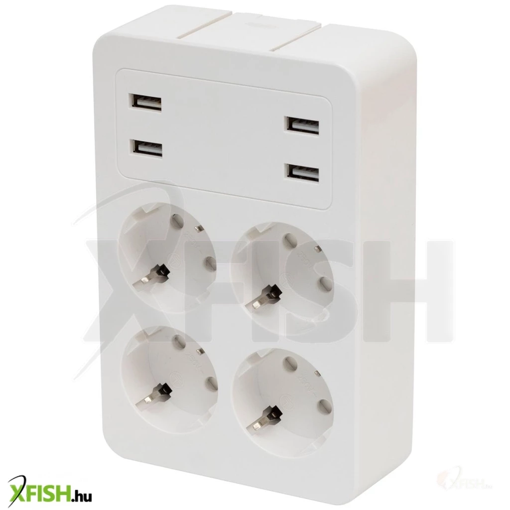 A Home nv 4 USB tálcás usb-s elosztó, 4 földelt aljzat, 4 USB aljzat össz 2,4a, elforgatható csatlakozódugó, max.3680w készletinformációihoz