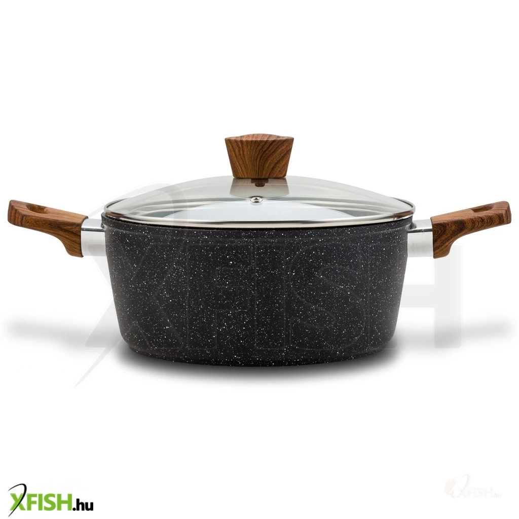 Szász nava 10-144-122 nature tapadásmentes lábas, kőbevonattal, hőálló fogantyú, üvegfedő, 28 cm