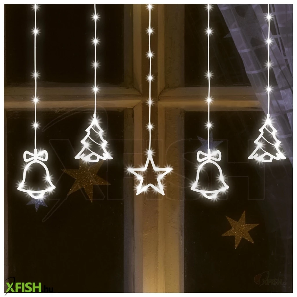 Dekorációs termékek home kaf 11/wh micro led-es figurás fényfüggöny, 2 M / 186 db hidegfehér led, harang / fenyő / csillag figurákkal, hálózati adapter, kül- és beltéri kivitel