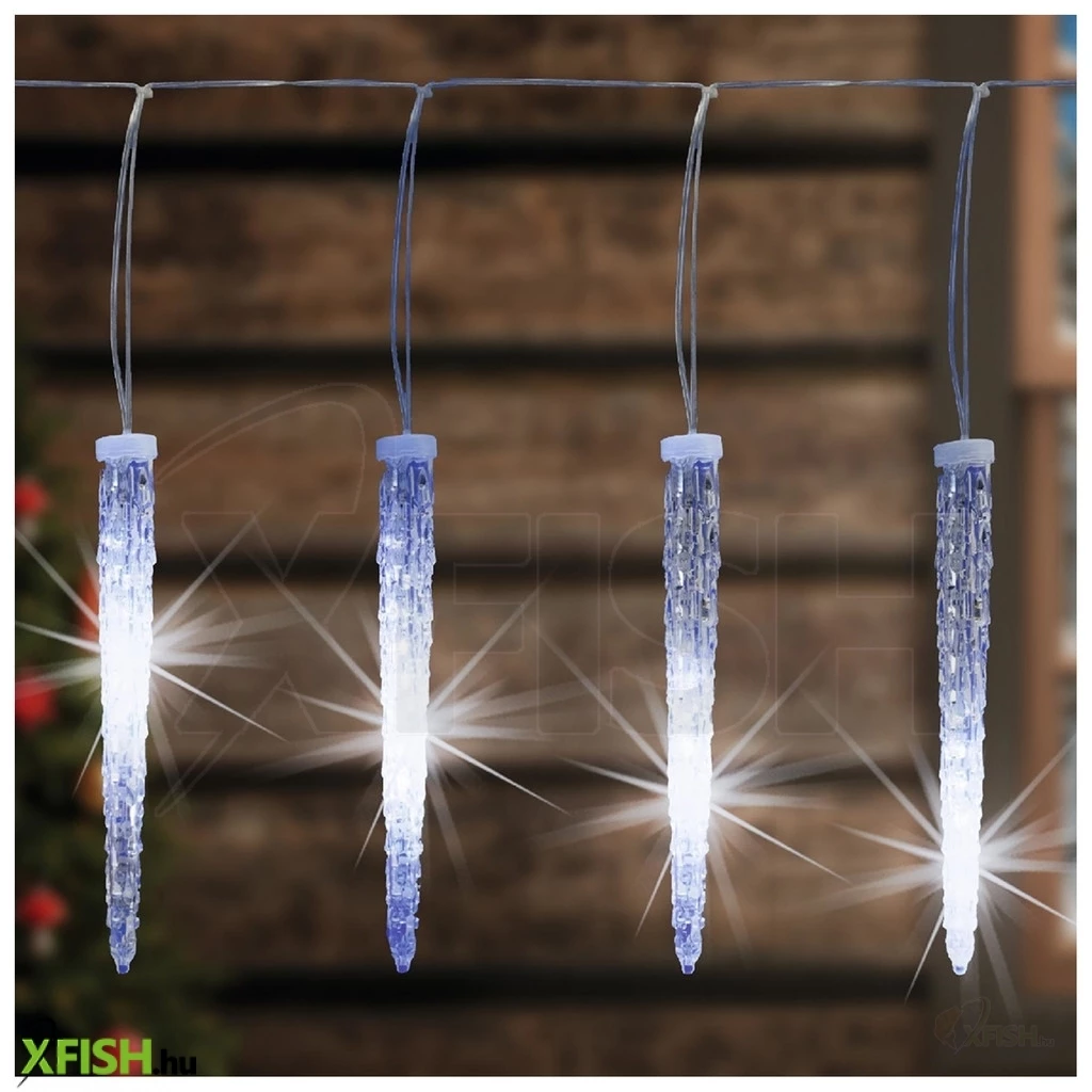 Dekorációs termékek home kjl 240 led-es jégcsap fényfüzér, 5,32x0,24 M / 240 db hidegfehér led, 15 db jégcsap, átlátszó vezeték, fényjáték, hálózati adapter, kül- és beltéri kivitel