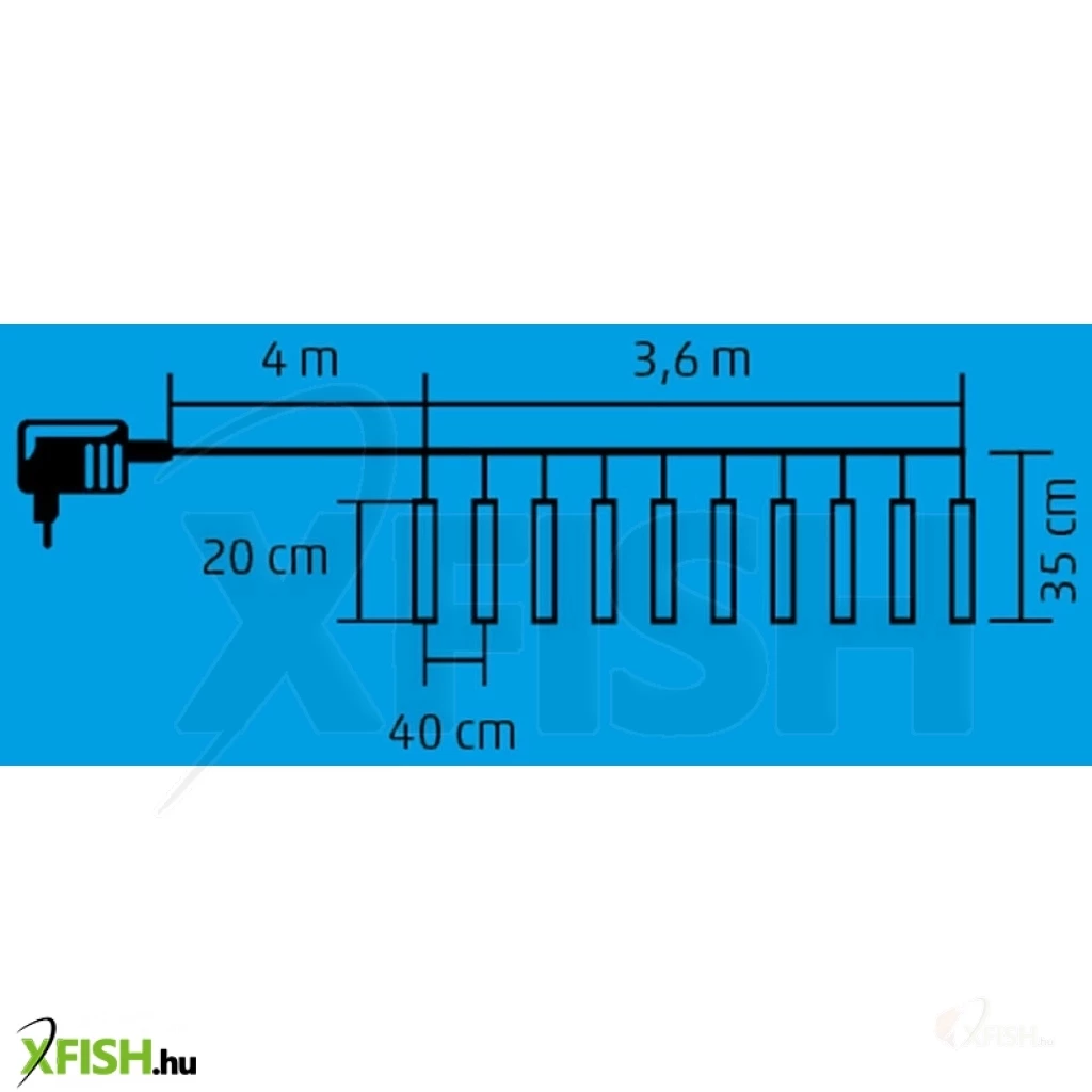 A fényfüzér teljes hossza 3,6 méter, így ideális választás hosszabb felületek, például ereszcsatornák, kerítések vagy teraszok díszítésére. A 4 méteres tápvezeték és a 230 v~/7 V adapter biztosítják a könnyű és biztonságos csatlakoztatást, még akkor is, ha a csatlakozó aljzat távolabb van. Az IP44-es védettségű adapter garantálja a biztonságos használatot a kültéri környezetben is.