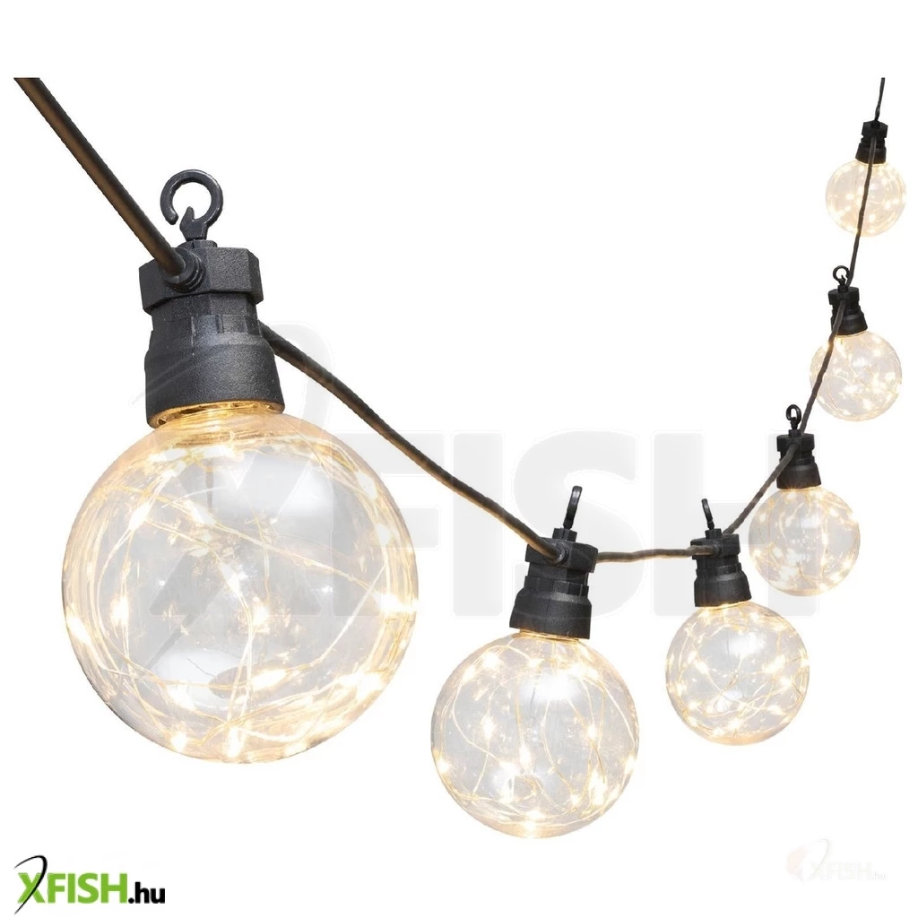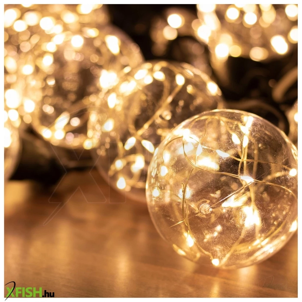 Home lpl 10 globe micro led-es fényfüzér, 4,5 M / 200 db melegfehér micro led, víztiszta búra, sorolható, fekete gumivezeték, adapter, kül- és beltéri kivitel