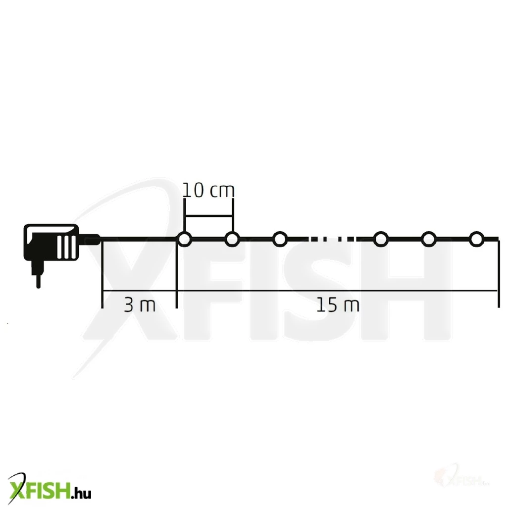 A 15 méter hosszú füzér és a 3 méteres tápvezeték elegendő rugalmasságot biztosít a tökéletes elhelyezéshez. A LED-ek közötti 10 cm-es távolság egyenletes fényeloszlást garantál. A fényfüzér tápellátásáról kültéri ip44 hálózati adapter gondoskodik, amely biztonságos és megbízható működést nyújt.