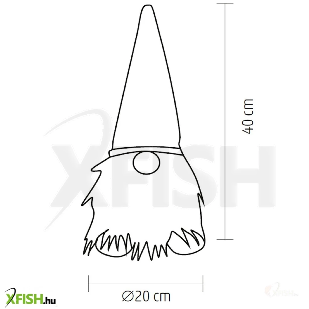 A termék tápellátását 3 darab 1,5V-os AA elem biztosítja (nem tartozék), amely szabad mozgathatóságot és vezetékmentes használatot tesz lehetővé. A 20 x 20 x 40 cm-es méretű ülő manó minden helyiségben mutatós, akár a nappaliban, akár a hálószobában helyezi el.