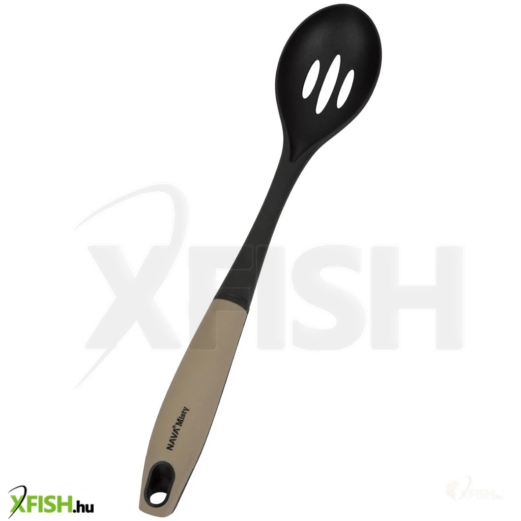 A Misty tálalókanalat (hossza 34 cm) kiváló minőségű nylon anyagból gyártja a nava, amely élelmiszerrel érintkezve is biztonságos, és akár 200°C-os hőmérsékletnek is ellenáll. Ergonomikus, csúszásmentes, puha tapintású fogantyúja kényelmes és biztonságos használatot tesz lehetővé, míg a fogantyú végén lévő praktikus lyuk lehetővé teszi, hogy könnyedén felakaszthassa. A kanál felületében lévő nyílások lehetővé teszik az étel lecsöpögtetését.