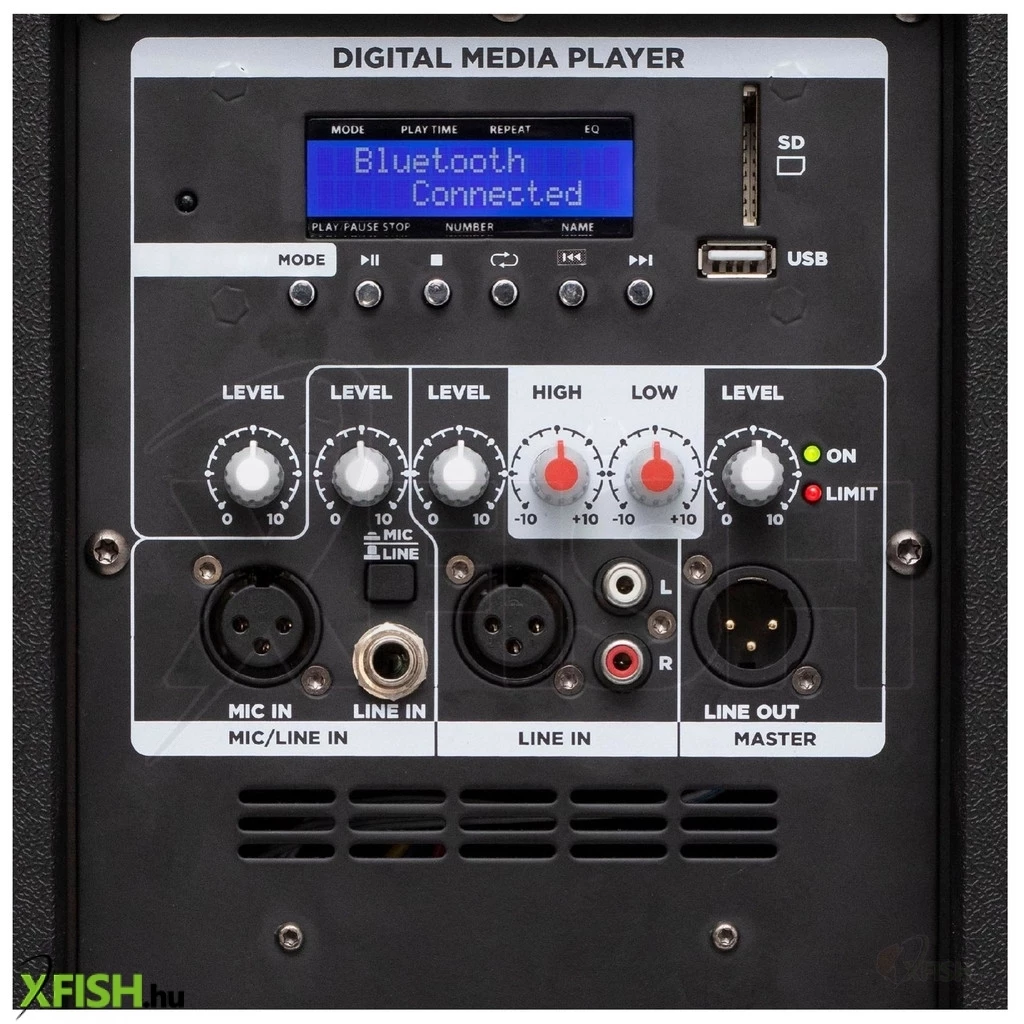 A hangdoboz MIC bemenettel (xlr), line 1 és line 2 (6,3 mm jack és rca), valamint XLR vonalkimenettelis felszerelt, így egyszerre több eszköz vagy mikrofon is csatlakoztatható. A magas- és mélyhangszínszabályzóvalminden hangzás egyéni igények szerint testre szabható. Továbbá a rendszer tetszőleges számú hangdoboz sorolását is lehetővé teszi, így könnyedén bővíthető.