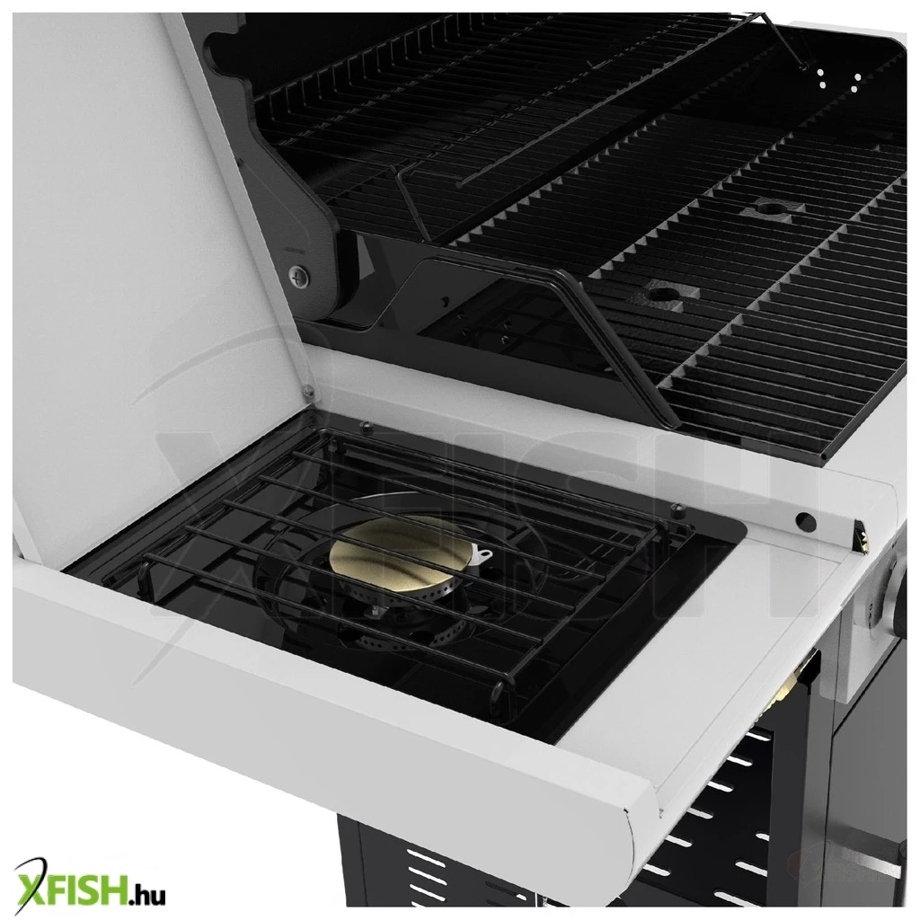 A Spring 3212 gázgrill műszaki adatai: Három égővel és három, 21 cm x 43 cm méretű ráccsal rendelkezik, amellyel körülbelül 10 fő számára szolgálhat fel grillezett ételeket. Egy rögzített oldalsó asztal és egy oldalsó égő is tartozéka a Spring 3212-nek. Az oldalsó égő például szószok vagy köretek készítésére lehet hasznos. Ezenkívül a készülék ajtóval ellátott tárolóhellyel is rendelkezik. Jó tudni, hogy ezt a gázgrillt kombinálhatja a Barbecook forgónyárs készletével is.