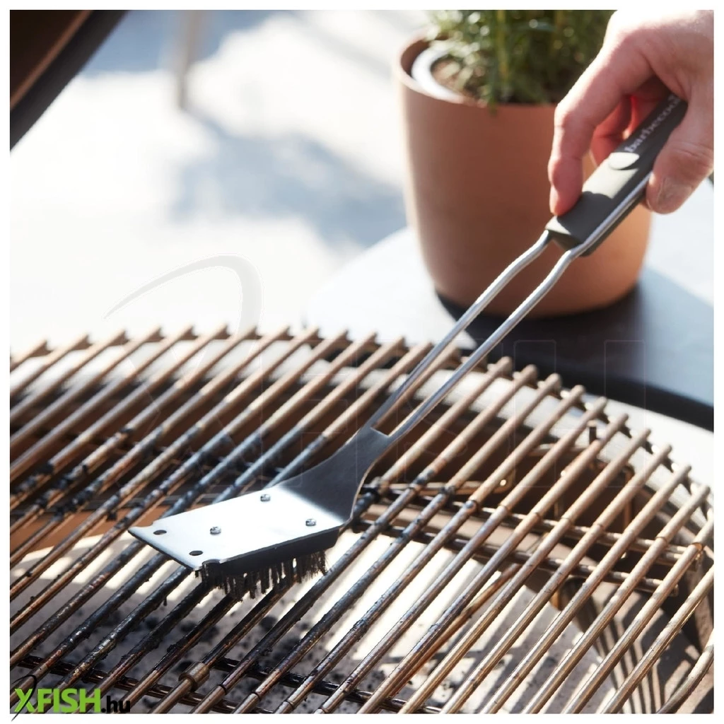 A khaki zöld fogantyú nemcsak kényelmes fogást biztosít, hanem egyedi megjelenést is kölcsönöz az eszköznek. A kétfunkciós tisztítókefe - amely egyesíti a súroló és kaparó funkciókat - hatékonyan távolítja el az odaégett maradványokat és zsírt a grillrácsról, így a grillt gyorsan és alaposan visszaállíthatja eredeti állapotába. A rozsdamentes acélból készült tisztítófej garantálja a hosszú távú tartósságot, míg a könnyen tisztítható design biztosítja, hogy a kefe mindig készen álljon a következő használatra.
