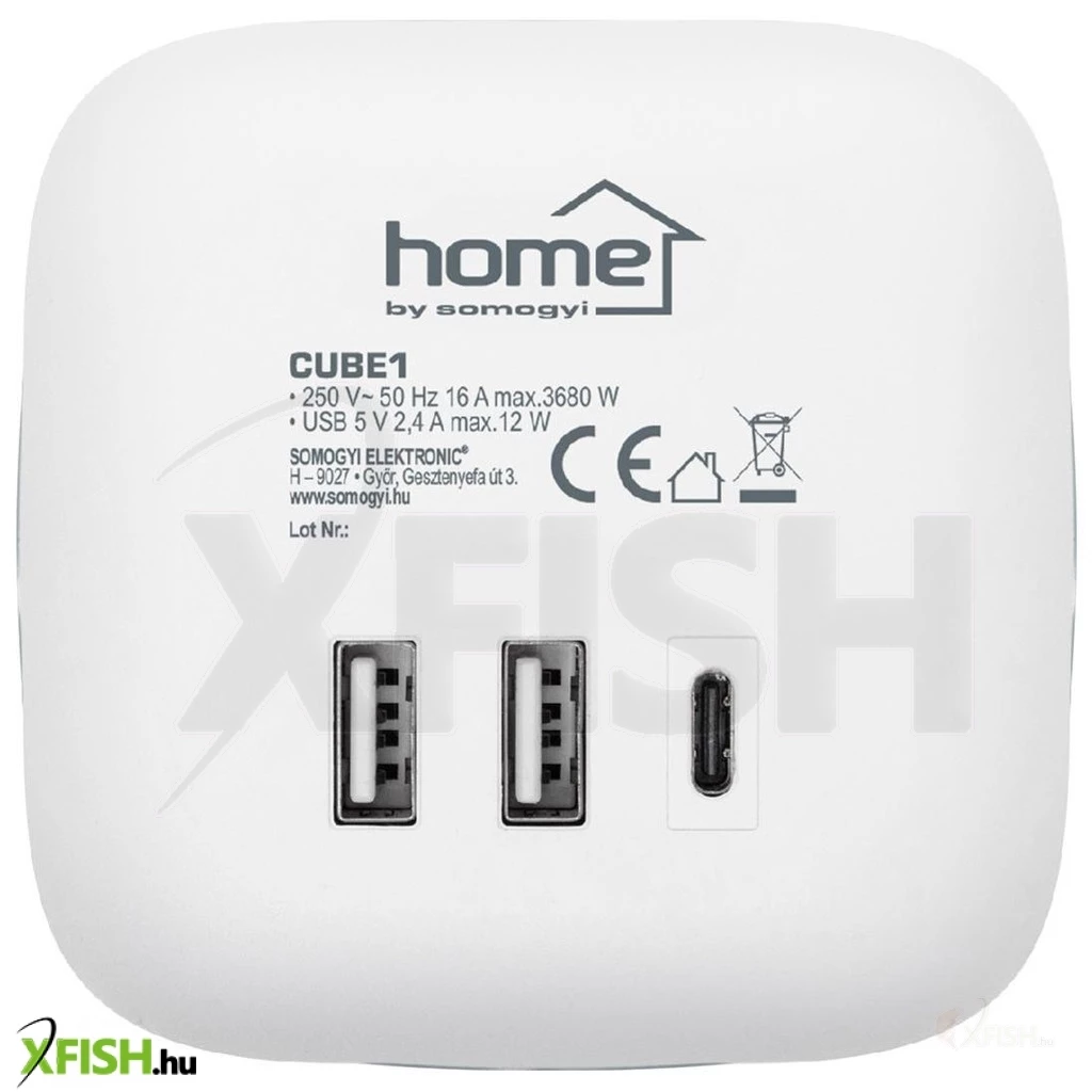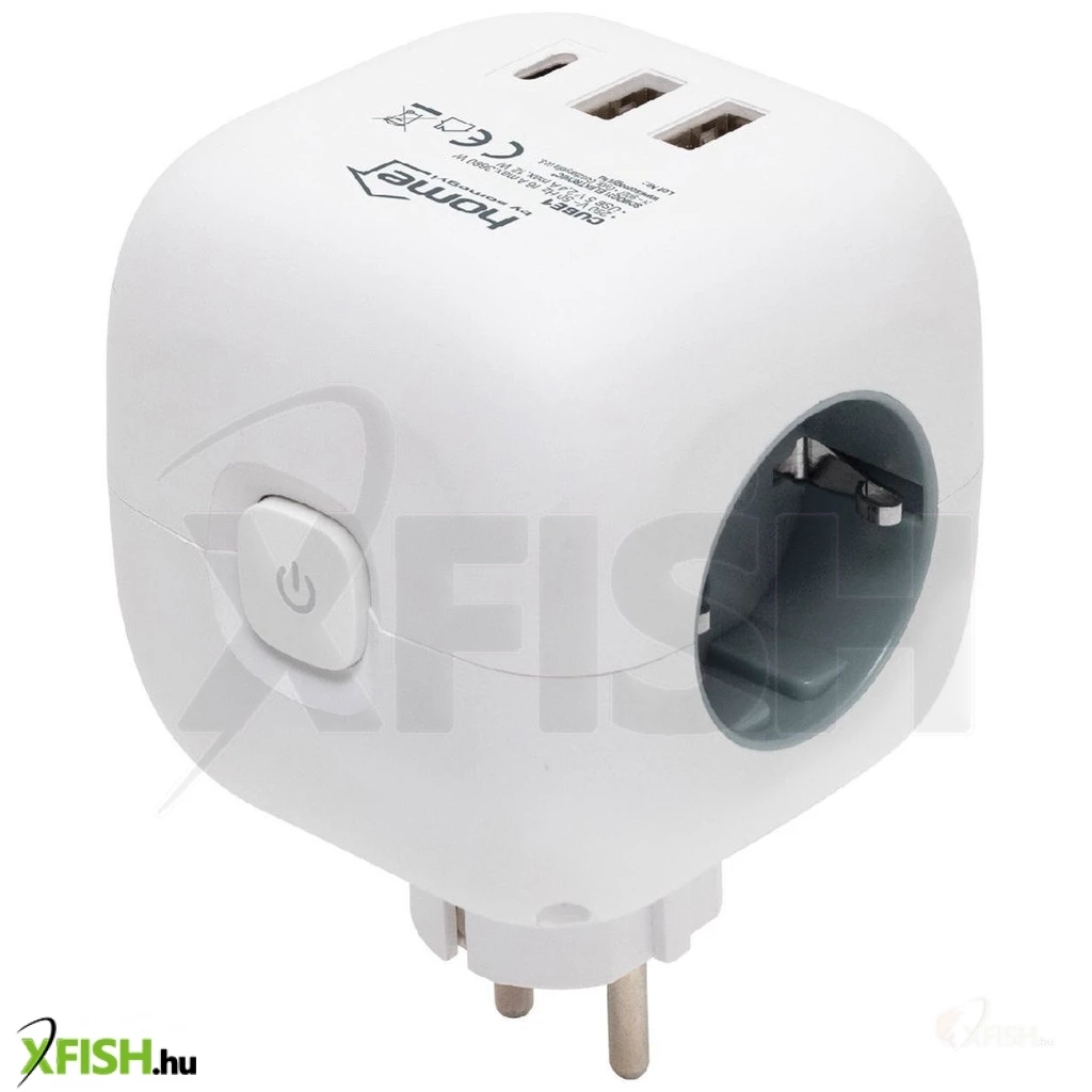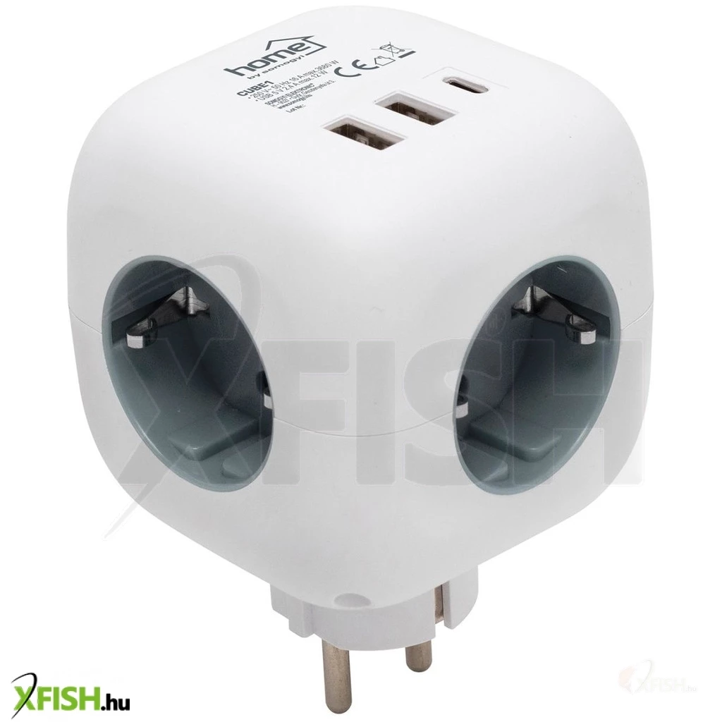 Home cube1 kocka elosztó USB töltővel, 3 aljzat gyermekvédelemmel, 1db USB c, 2db USB a, max. 3680 W