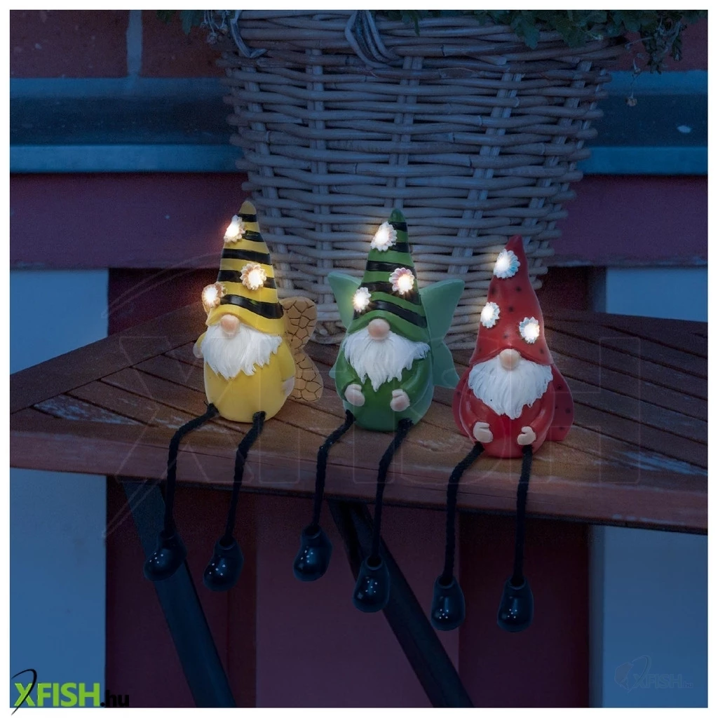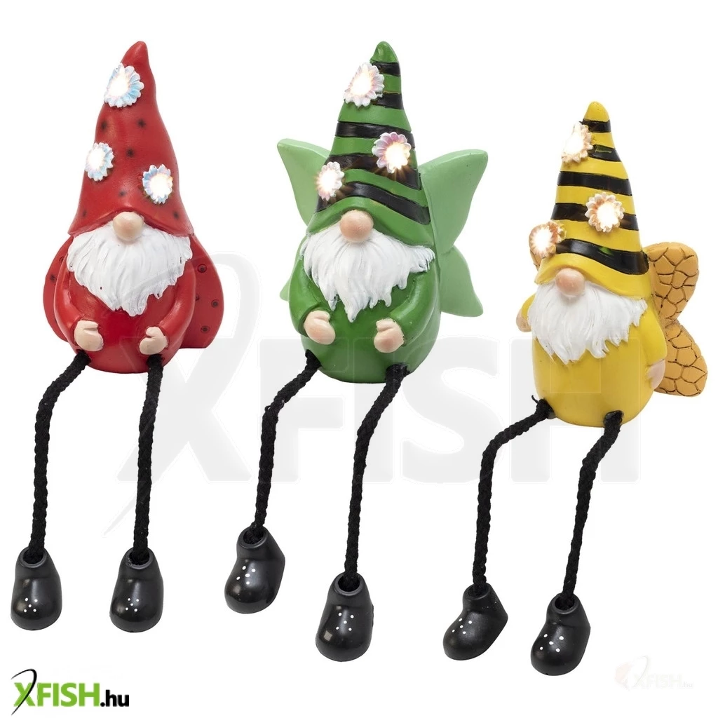 Minden törpefigurába 3 melegfehér LED van beépítve, amelyek finoman megvilágítják a törpe kezében lévő virágokat. Az aprólékosan kidolgozott műgyanta kivitel és a lógó lábú design játékos és bájos megjelenést biztosít, így tökéletes kiegészítője lehet kertjének, teraszának vagy erkélyének.