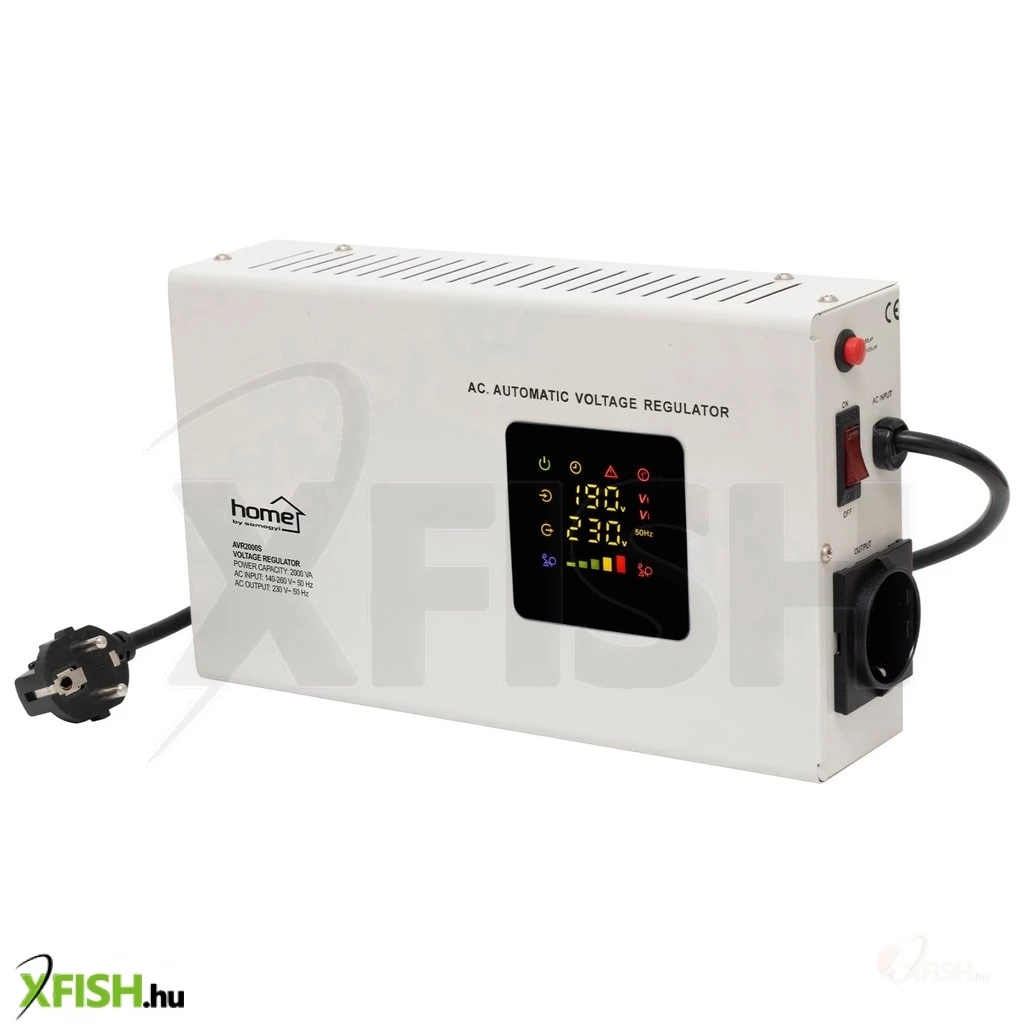 Home avr2000s feszültségstabilizátor, 2000va, automatikus működés, vékony kivitel, falra szerelhető, színes digitális kijelző, teljeskörű meghibásodás elleni védelem