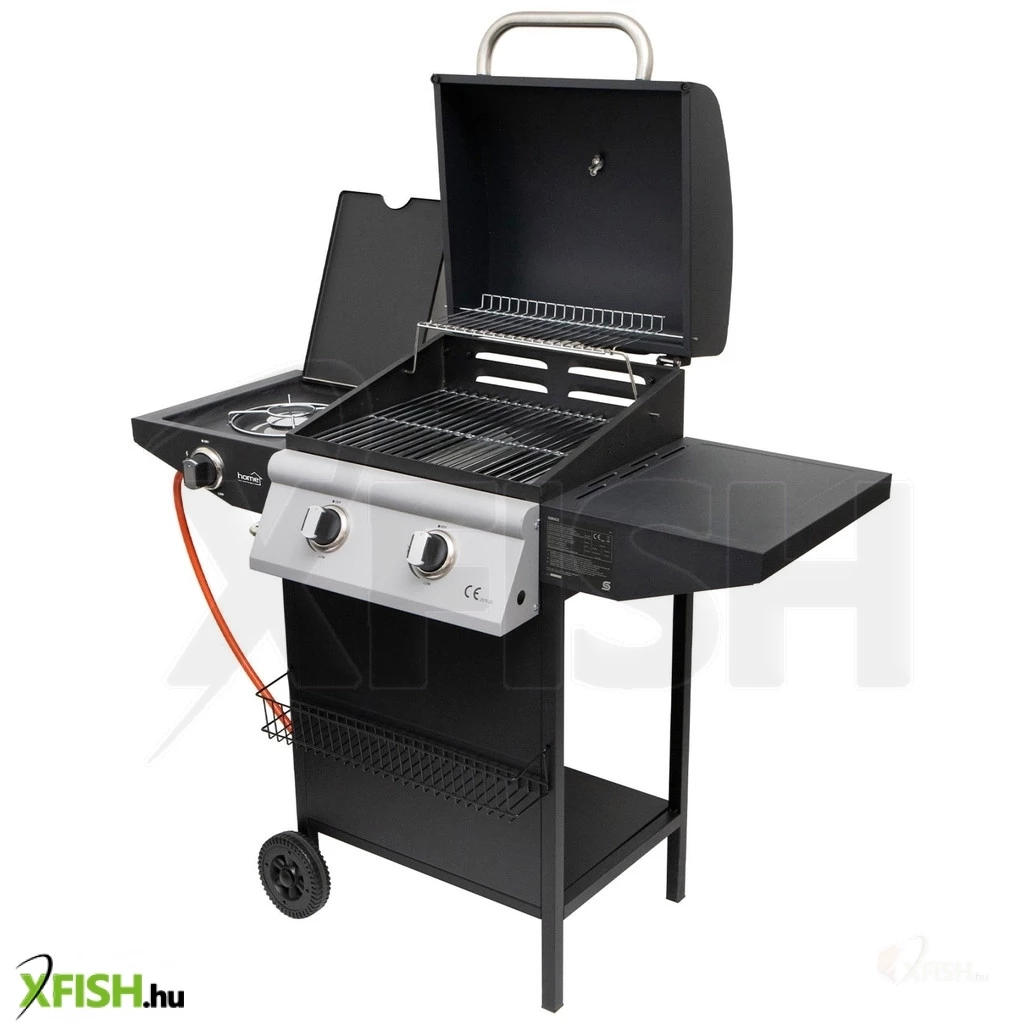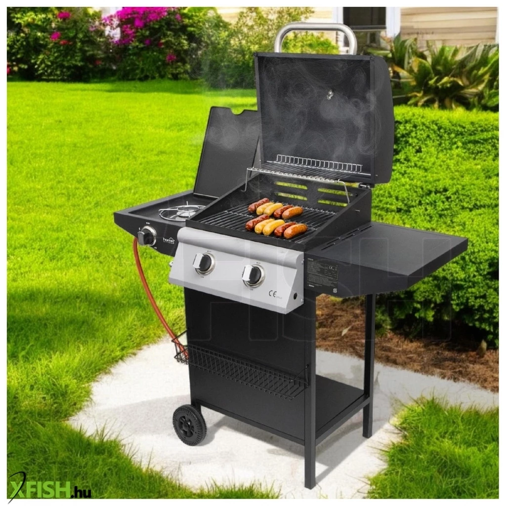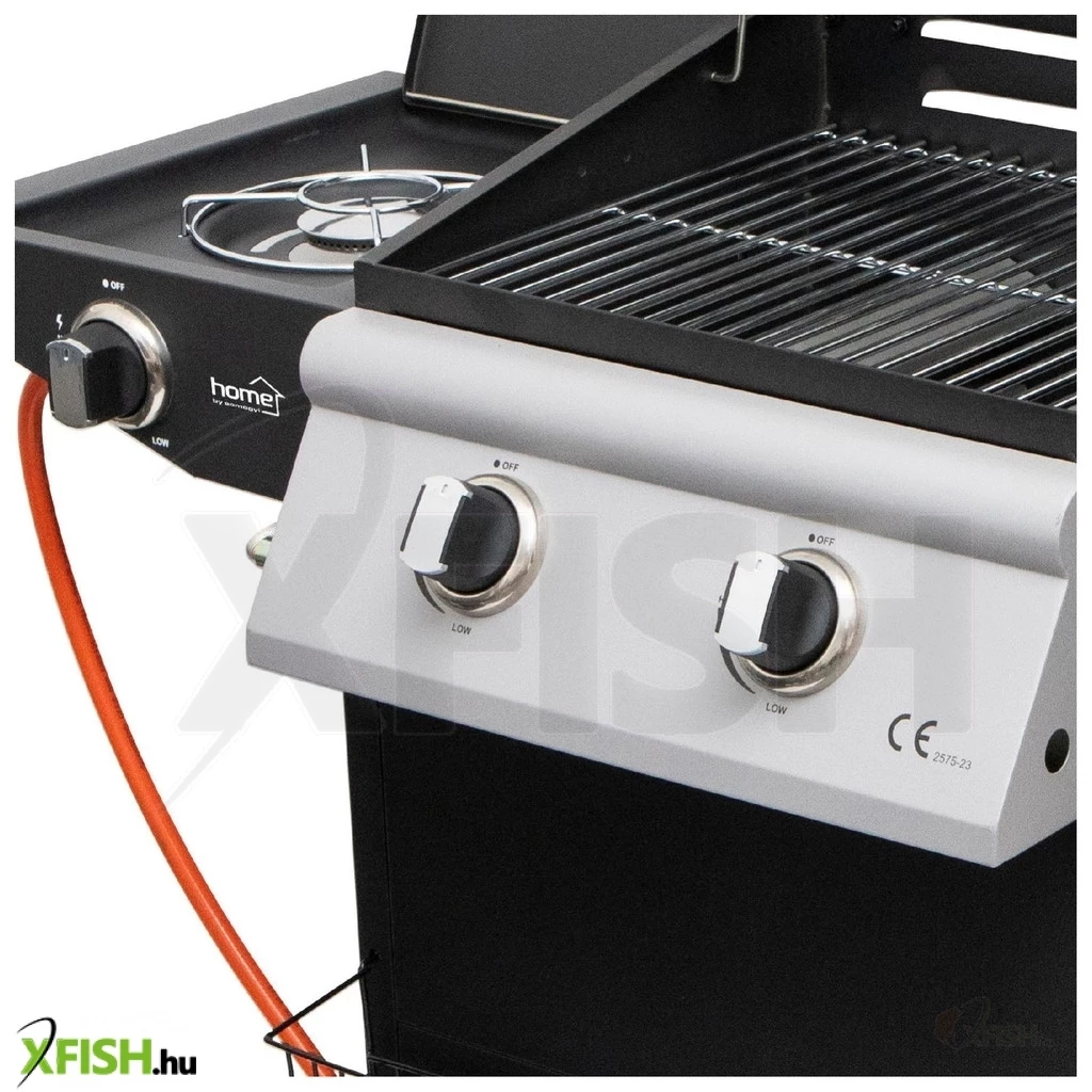 Home grg02 gázgrill, 2 főégővel, 1 oldalégővel, 3,2 kw égőnkénti teljesítmény, 440x400 mm sütőfelület, nyomásszabályozó készlettel