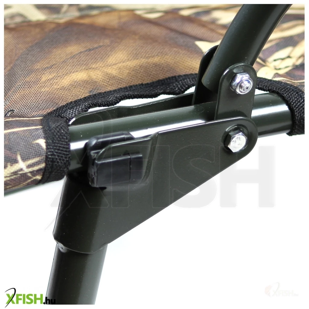 Nagyméretű, párnázott horgász fotel. Az ülőfelülethez használt anyagok magas kopásállóságúak mégis kényelmes ülést biztosítanak. A vastag párnázottság garantálja, hogy hosszabb idő alatt sem válik kényelmetlenné. A fotel teleszkópos rendszerű lábai gond nélkül alkalmazkodik szinte bármilyen terepviszonyhoz. A lábak végén extra széles, gömbcsuklós talpak találhatók, amelyek nem engedik megsüppedni a fotelt, még laza szerkezetű talajon sem. A lábak kinyitva rögzülnek, így a fotel odébb helyezésekor sem csuklanak össze. A háttámla dőlésszöge állítható, erős zárszerkezettel rögzíthető. Festett, könnyű, de masszív fém szerkezete nagy terhelésnél is megbízhatónak bizonyul.