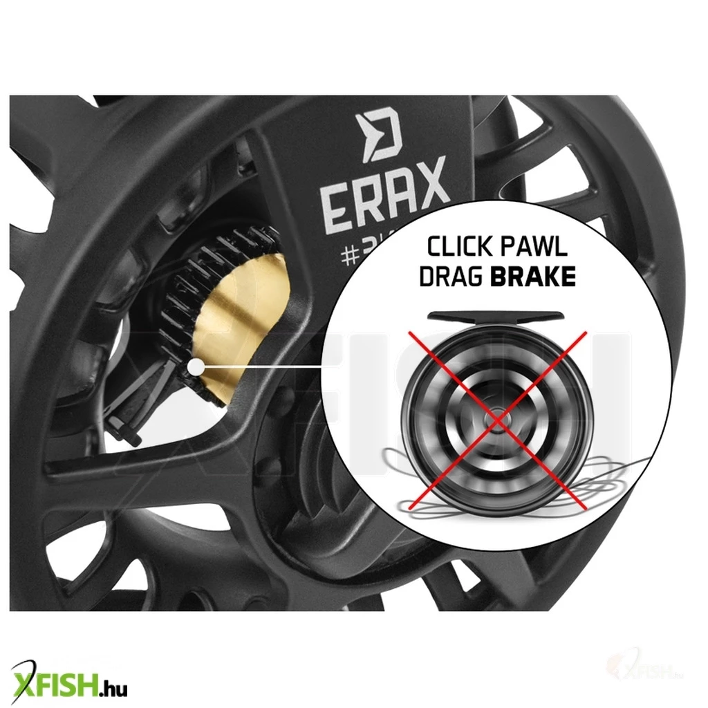 Az ERAX rendkívül érzékeny féke alaposan el van rejtve az orsóházban, hogy jobban ellenálljon a szennyeződéseknek és a homoknak, különösen akkor, ha horgászat közben víz éri. A fék zárópecek biztosítással rendelkezik, amely megakadályozza az orsó túlpörögését, amikor a hal hirtelen nagyon gyorsan mozog. Ezenkívül megakadályozza a zsinór összegabalyodását, ami a megakasztott hal elvesztéséhez vezethetne.