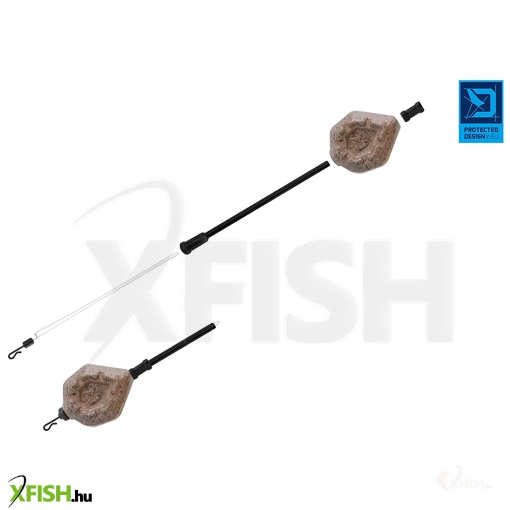 Egyedülálló szögletes formával rendelkezik, amely lehetővé teszi a kompaktabb súly elérését, miközben megtartja ugyanazt a tömeget. Ez a tényező kiváló dobási tulajdonságokat és gyors süllyedést biztosít. Az ólom formája tökéletesen hasonlít a PVA zacskó belsejében lévő etetőanyag keverékhez, leegyszerűsítve annak elkészítését. Ezenkívül a kiszélesített alsó rész több tömeget koncentrál, így még hosszabb és pontosabb dobásokat tesz lehetővé – még akkor is, ha az ólom a PVA tasakban van.