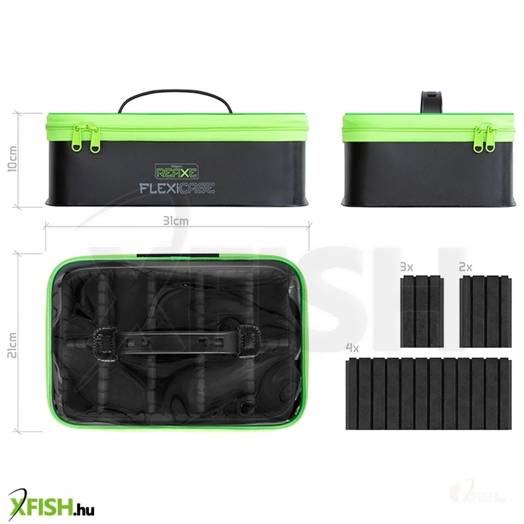 A Delphin REAXE FlexiCASE egy ötletesen megtervezett rendszerező táska, amely EVA anyagból készül, és lehetővé teszi a különféle feeder felszerelések – etetőkosarak, horgok, csalik – rendszerezett tárolását.