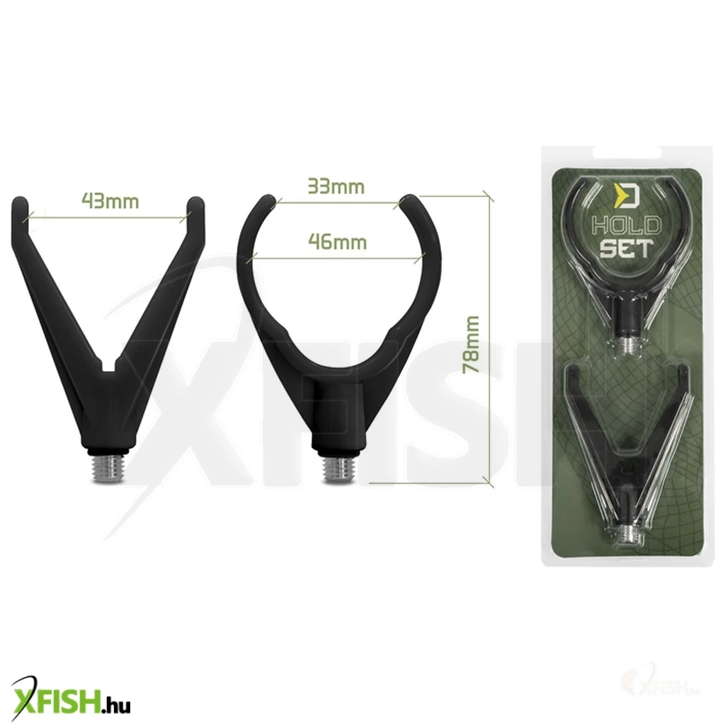 A HoldSET tartós műanyagból készül, praktikus és megfizethető, ezért kezdőknek és tapasztalt horgászoknak egyaránt megfelelő. A hátsó bottartó U alakú, amely biztonságos elhelyezést tesz lehetővé különböző nyélátmérőjű botok számára. Az első tartó V alakú, és egy bevágással van ellátva, amely lehetővé teszi a zsinór sima mozgását, amikor a hal megakad.