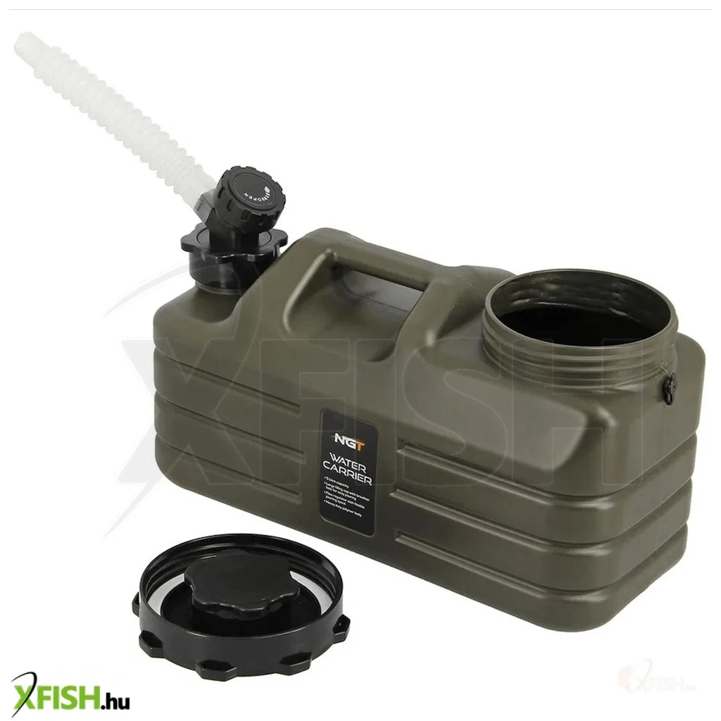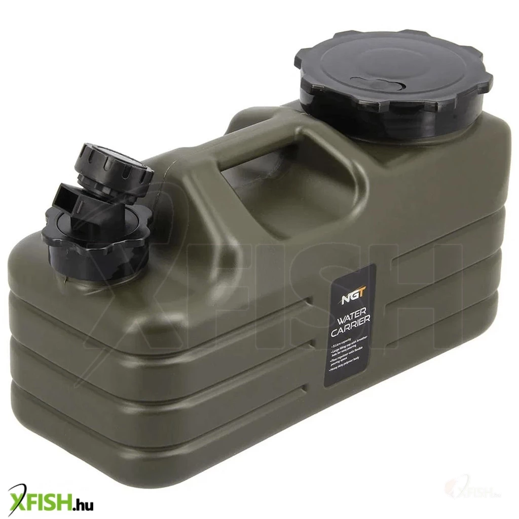 A NGT Heavy Duty Water Carrier vízhordozó kanna 5 literes kapacitással ideális megoldás víz szállítására a horgászhelyekre vagy kempingezéskor, masszív és tartós műanyagból készült, amely ütés– és korrózióálló, a stabil fogantyú kényelmes szállítást tesz lehetővé, míg a széles töltőnyílás egyszerűen használható töltésnél és ürítésnél, a csavaros kupak szivárgásmentes zárást biztosít, a kanna terve extra oldalsó bordázással rendelkezik a jobb fogásért és ellenállóságért, kemping vagy vízparthoz tökéletes tartozék, amely megbízhatóan szolgálja a vízszükségleteket.