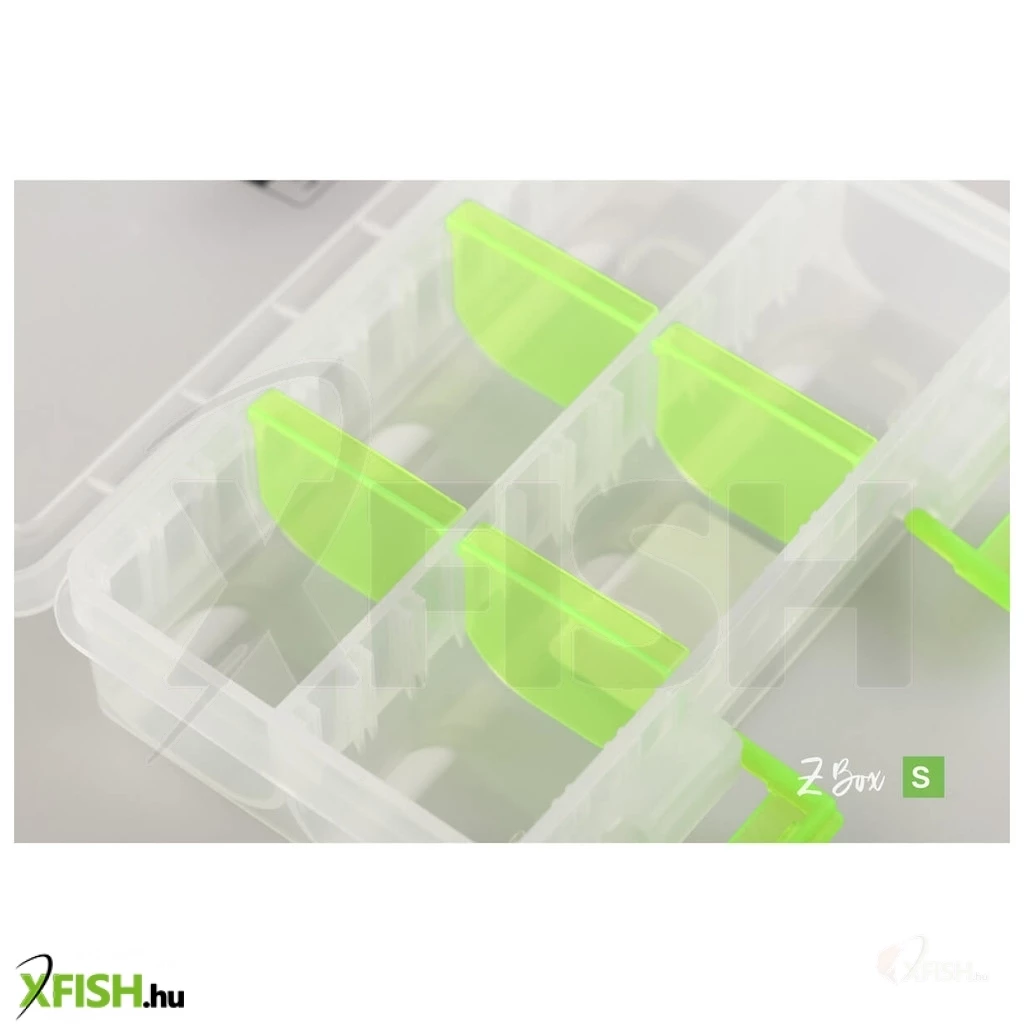 A Zfish Tackle Box Z egy kompakt és sokoldalú horgászdoboz, ideális választás rövidebb, szerelékezős horgászatokhoz. Alsó részében fix rekeszes kialakítás található – 1 nagyobb nyitott, valamint 8 zárt kis rész – tökéletes kisebb kapcsok, forgók, gyöngyök vagy csalik tárolására. A fedő részen 21 átlátszó, önzáró fülkét találunk, amelyek révén gyorsan áttekinthetők a tartalmak. Két masszív zárópánt és strapabíró zsanérok garantálják, hogy használat közben nem nyílik ki véletlenül – még aktív pakolás vagy szállítás mellett sem . A doboz mérete (kb. 255 × 100 × 40 mm) praktikus mélységet és kényelmes használhatóságot biztosít, miközben kompakt marad hátizsákban is . Modern, letisztult formatervezése lekerekített élekkel strapabíró és könnyen kezelhető külsőt ad this horgász kiegészítőnek . Strapabíró anyaghasználata és átgondolt rekeszelése miatt kiváló társ a mindennapi horgászat során.