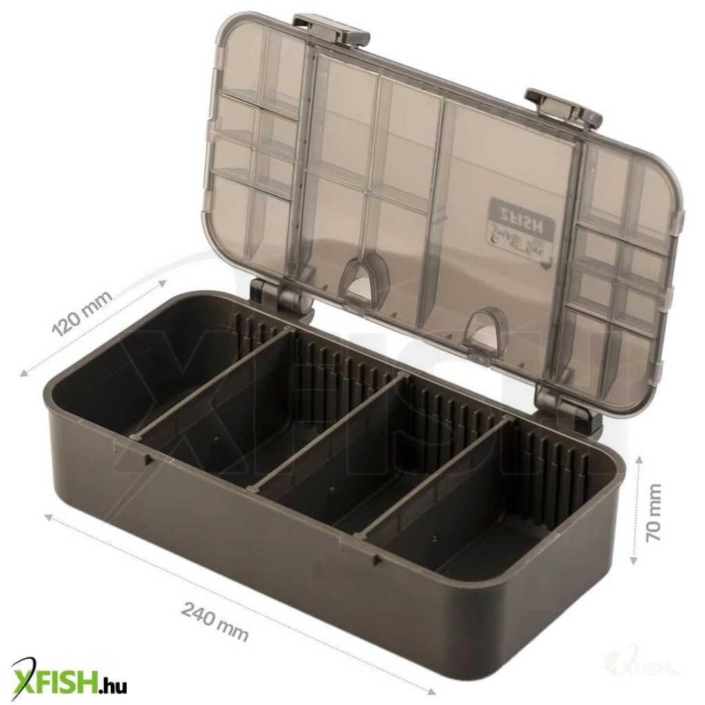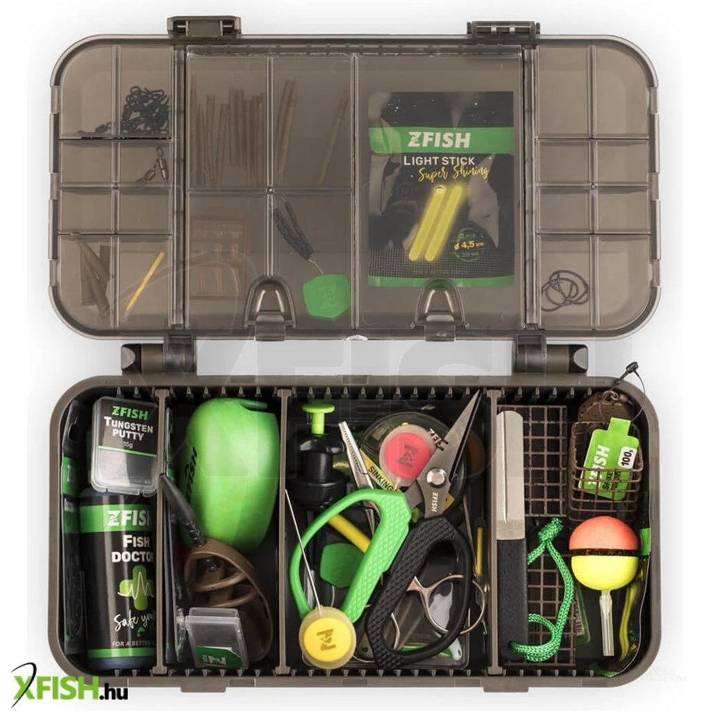 A Zfish Tackle Box Smart Box ZFX egy univerzális és praktikus horgászdoboz, amelyet kifejezetten aprócikkek, végszerelék-alkatrészek, forgók, kapcsok és egyéb kiegészítők rendszerezett tárolására terveztek. Az alsó rész nagy méretű, állítható rekeszekkel rendelkezik, így könnyedén személyre szabható különféle méretű elemekhez. A felső rész 21 különálló, átlátszó fedelű tárolóval van ellátva, melyek gyors hozzáférést biztosítanak a legkisebb horgászcikkekhez is. Masszív zsanérjai és megbízható zárórendszere biztosítja, hogy a doboz használat közben ne nyíljon ki, mégis könnyen kezelhető maradjon. Strapabíró műanyagból készült, így jól bírja a part menti használatot, gyakori pakolást vagy szállítást. Kompakt méretének köszönhetően kényelmesen elfér horgásztáskában vagy ládában is. Ideális választás minden horgász számára, aki rendszerezni szeretné aprócikkeit egy megbízható, áttekinthető és tartós megoldás segítségével.