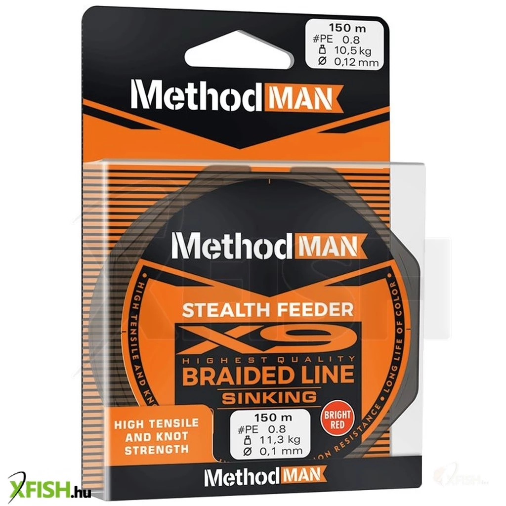 Methodman Stealth X9 Fonott Feeder Zsinór Red Sinking 150m 0.12mm 10.5Kg