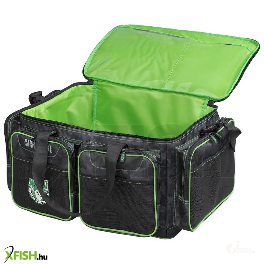 A Madcat Carryall egy tágas és masszív szerelékes táska, amely ideális megoldás a horgászok számára a felszerelés rendszerezett és biztonságos tárolására. Tartós, vízlepergető anyagból készült, amely védi a benne lévő eszközöket az időjárás viszontagságaitól és a sérülésektől. Több különálló rekesszel és zsebbel rendelkezik, így könnyen elkülöníthetők benne a csalik, előkék, eszközök és egyéb kiegészítők. Erős cipzárakkal és megerősített fogantyúval ellátott, ami megkönnyíti a szállítást és a kezelést. Kompakt kialakítása ellenére nagy tárolókapacitással bír, így praktikus választás minden horgász számára, aki rendszerezetten szeretné hordozni felszerelését.
