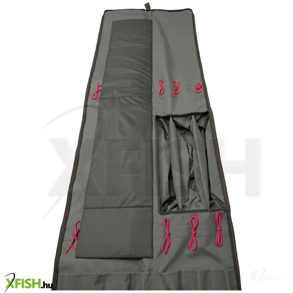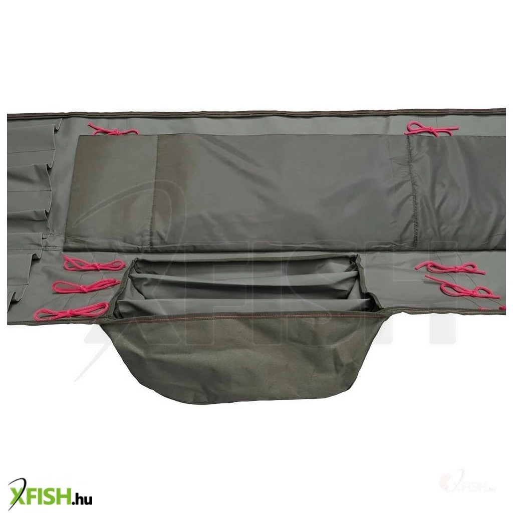 A horgász botzsák 3db 360cm hosszú kétrészes horgászbot befogadására alkalmas orsóval. További három botot orsó nélkül lehet benne tárolni.