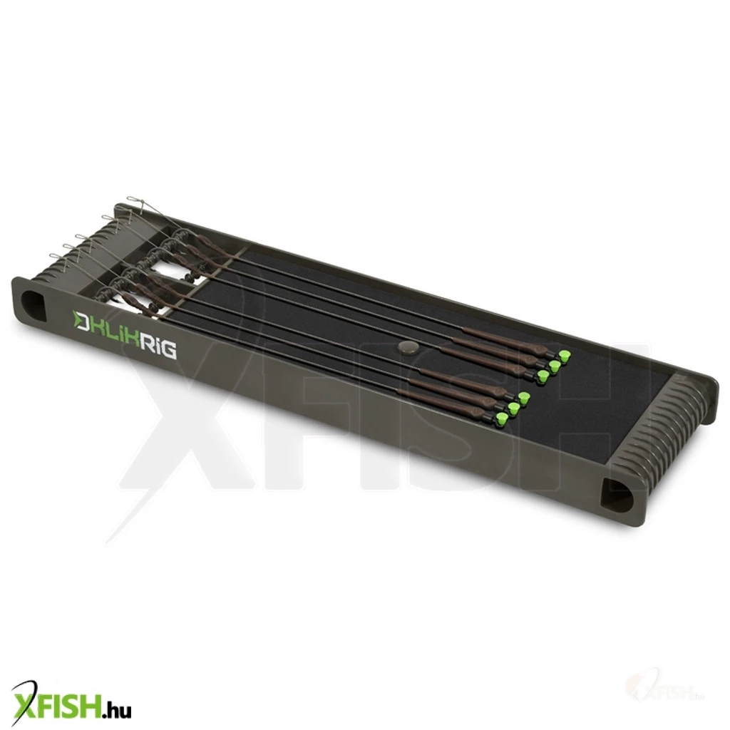 A Delphin KlikBOX Rig egy kétoldalas előketartó doboz, amely az előkék áttekinthető tárolására szolgál. Mindkét oldalon azonos rendszer található: egy finom rovátkákkal ellátott műanyag rész a horgok rögzítésére, valamint egy keményített habból készült lap, amelybe a csomagban található tűk segítségével tudja rögzíteni az előkék végét.