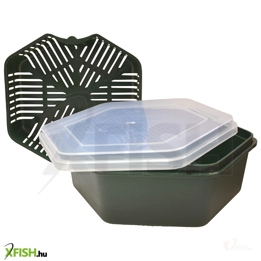 A Carp Expert Practic csalisdoboz egy sokoldalú, hatszögletű tároló, mely átlátszó tetővel és egy finom áztató/csepegtető tálcával rendelkezik. Ez a tálca pontosan illeszkedik a doboz belsejébe, így ideálissá válik csalogatóanyagok, pelletek, bojlik vagy akár élőcsalik (mint például csonti) áztatására és tárolására. A doboz ellenálló műanyagból készült, jól zárható, és három különböző méretben elérhető – 1 l, 1,5 l és 2 l űrtartalommal –, így minden horgászathoz könnyedén választható változat.