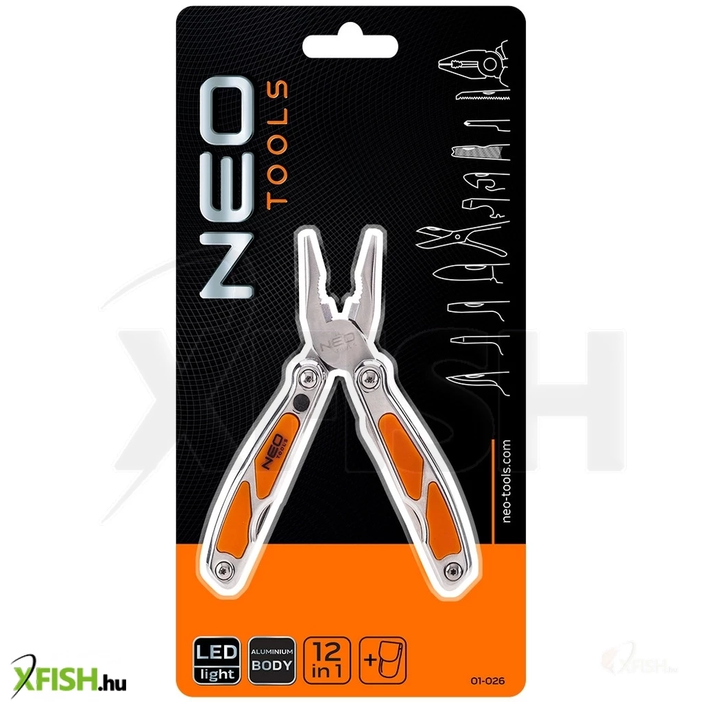 Neotools multifunkciós szerszám, 12 funkció, beépített LED lámpa, nyitva/összecsukva 155mm/100mm