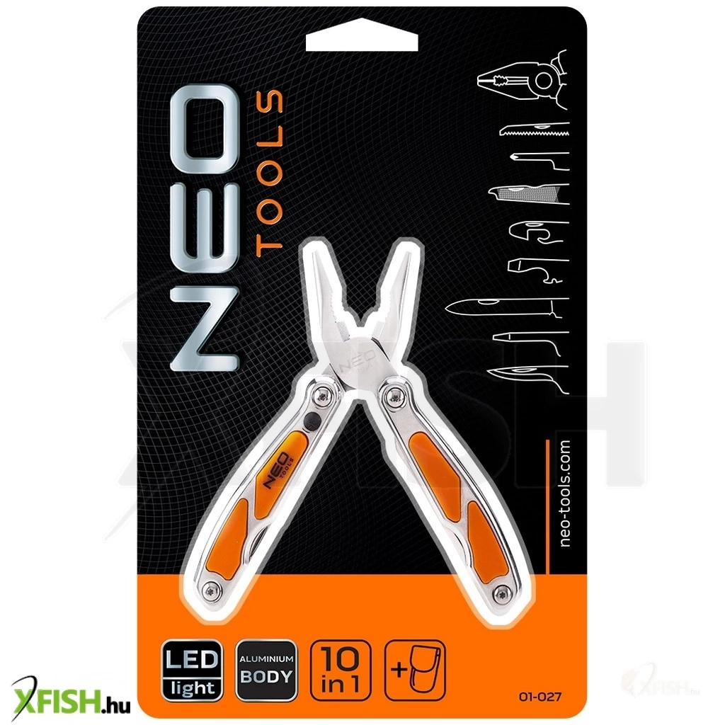 A Neotools szerszám legfőbb vonzereje a beépített LED lámpa, ami lehetővé teszi a sötétben történő munkavégzést is, megkönnyítve ezzel a feladatok elvégzését korlátozott fényviszonyok esetén is. Az eszköz része egy fogó, egy konzervnyitó, valamint PH2 és SL csavarhúzó is, így gyorsan és hatékonyan megoldhatók a különböző szerelési feladatok. A 420 acélból készült penge, fafűrész és reszelő tartósságot és megbízhatóságot kínál, míg a szúró-fúró, üvegnyitó, és konzervnyitó további hasznos elemek a mindennapi használat során.