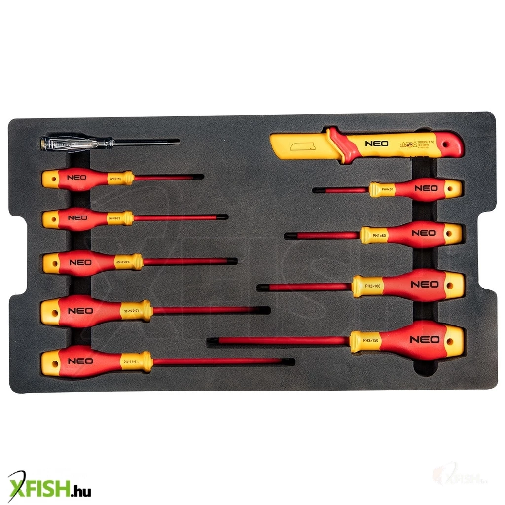 KategóriákKategóriákKerti szerszámok, eszközök Szerszámkészlet Neotools villanyszerelő szerszámkészlet kofferben, 52db, 1000v, szigetelt