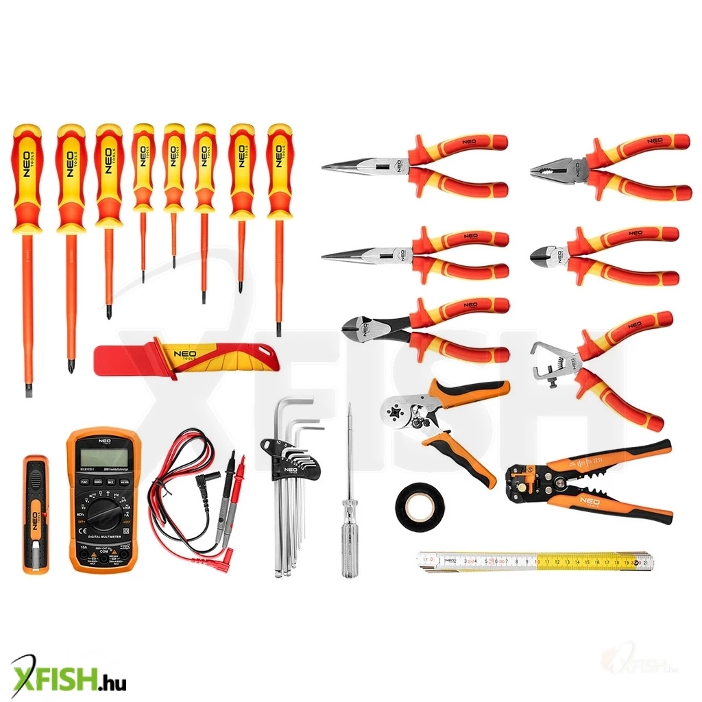 A Neotools szerszámkészlet villanyszerelőknek egy alaposan megtervezett, 31 részes készlet, amelyet kifejezetten elektromos munkákhoz fejlesztettek ki. Ez a professzionális szerszámkészlet biztosítja, hogy minden szükséges eszköz kéznél legyen a precíz és biztonságos villanyszerelési feladatok elvégzéséhez.