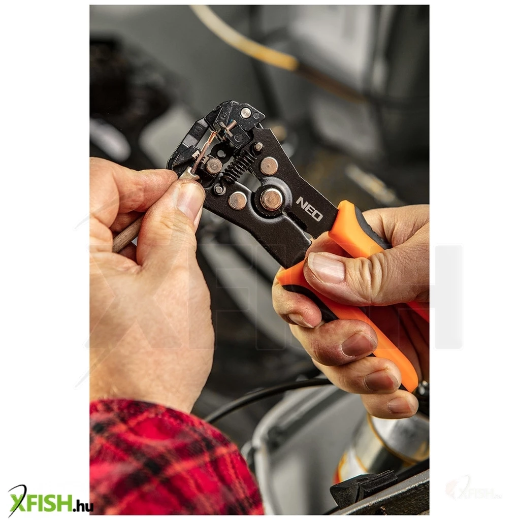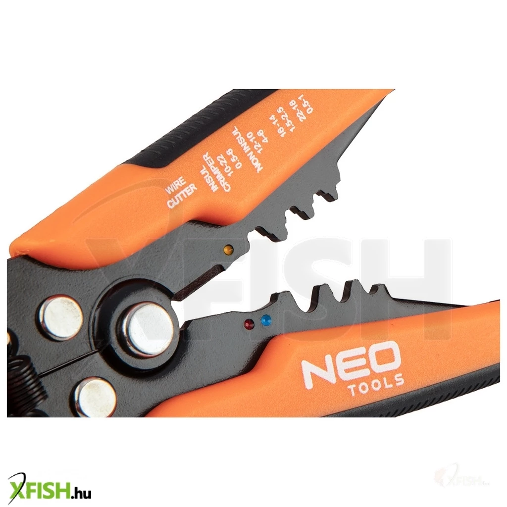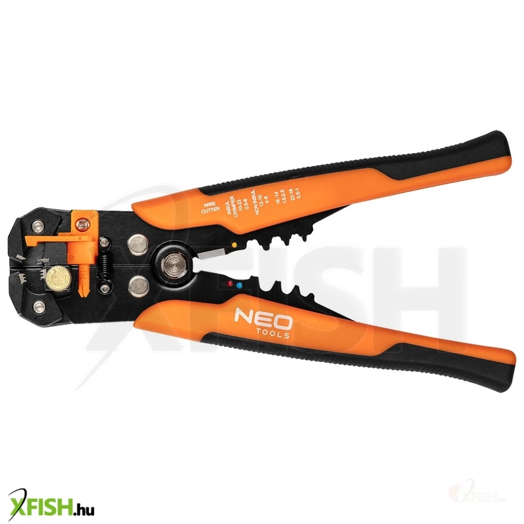 Köszönjük, hogy felfedezed a Neotools automata kábelcsupaszító fogóját, amely tökéletes választás professzionális és hobbi horgászok számára egyaránt. A 200 mm-es hosszúságú NEO automatikus homlok kábelcsupaszoló fogó (ref. 01-540) egy prémium eszköz, amelyet kifejezetten úgy terveztek, hogy megkönnyítse a kábelek szigetelésének eltávolítását, valamint a csatlakozó végek krimpelését. A szerszám használata egyszerű, precíz, és tökéletesen alkalmas a 0,5 és 6 mm² (22-10 AWG) közötti kábelcsupaszítási tartományhoz.