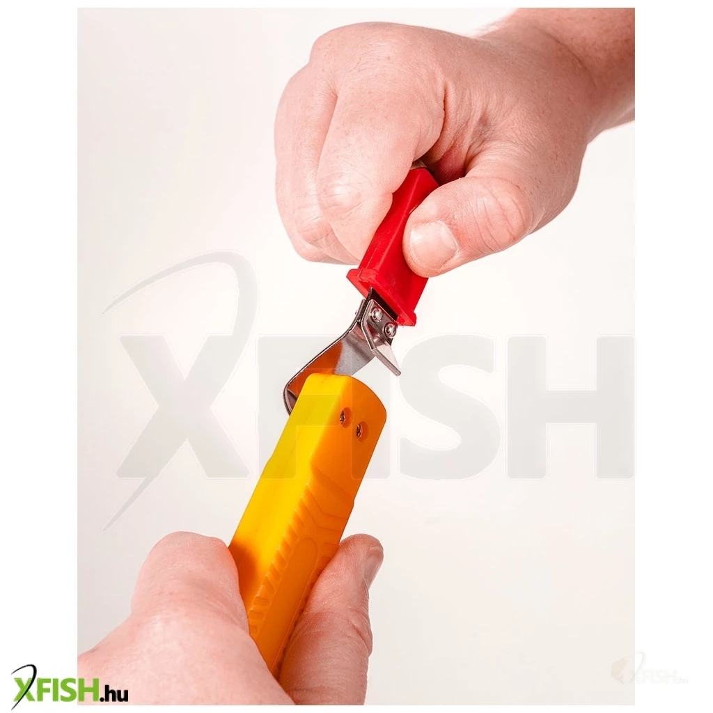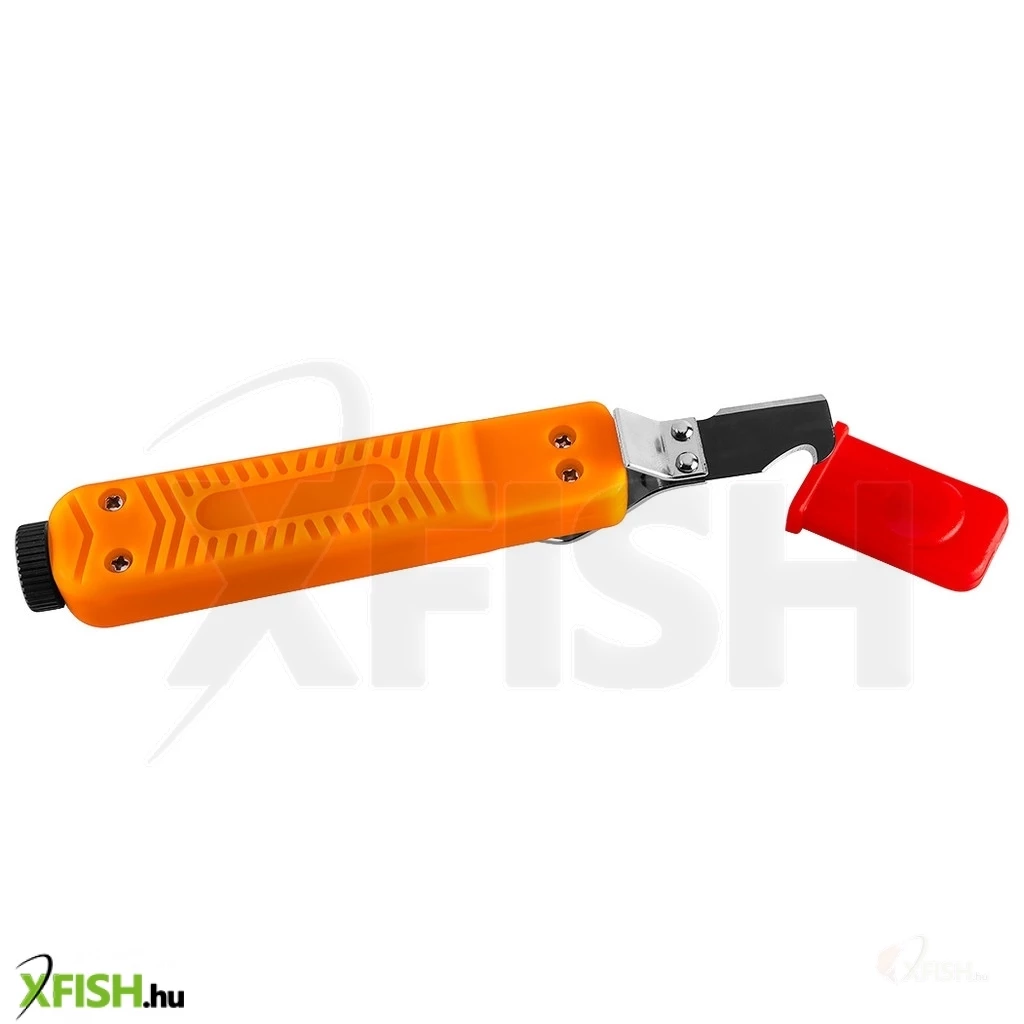 Az integrált kábelbilincs lehetővé teszi a gyors és biztonságos csupaszítást anélkül, hogy veszélyeztetné a kábelek épségét. A speciális kampóval ellátott penge precíz vágást tesz lehetővé, segítve a könnyed és pontos munkafolyamatokat. Mindezek mellett a szerszám egy pengevédő sapkával is el van látva, amely garantálja a biztonságot tárolás és szállítás során, megelőzve a sérüléseket.