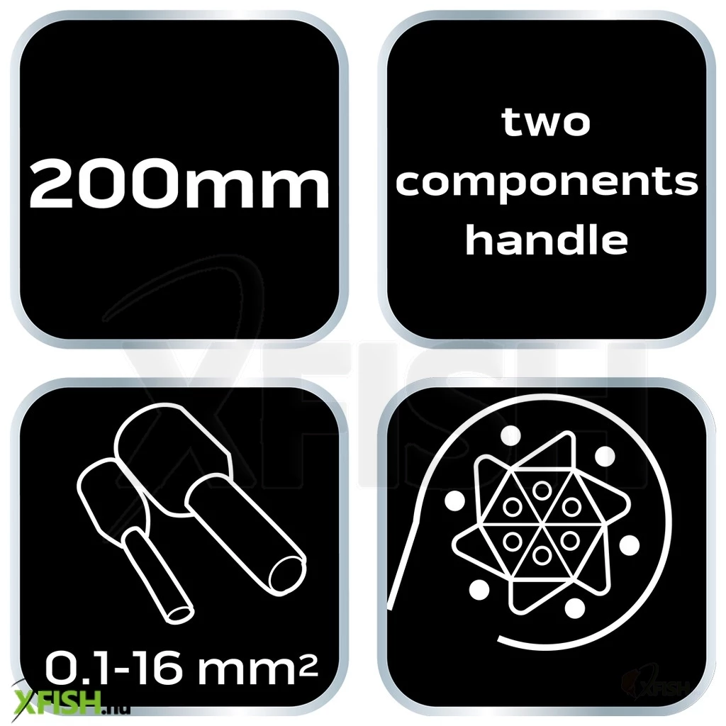 A Neotools krimpelő- és érvéghüvelyfogó kifejezetten azok számára készült, akik precíz és megbízható szerszámra vágynak a professzionális munkához és hobbi projektekhez egyaránt. Ez a fogó több mint egyszerű szerszám; egyedülálló kialakításának köszönhetően hatalmas munkatartományt ölel fel, amely lehetővé teszi a különböző méretű érvéghüvelyek gyors és precíz rögzítését. Az eszköz 0,1 - 16 mm² közötti keresztmetszetű hüvelyek krimpelésére alkalmas, amely kiemelkedő sokoldalúságot biztosít a felhasználóknak.