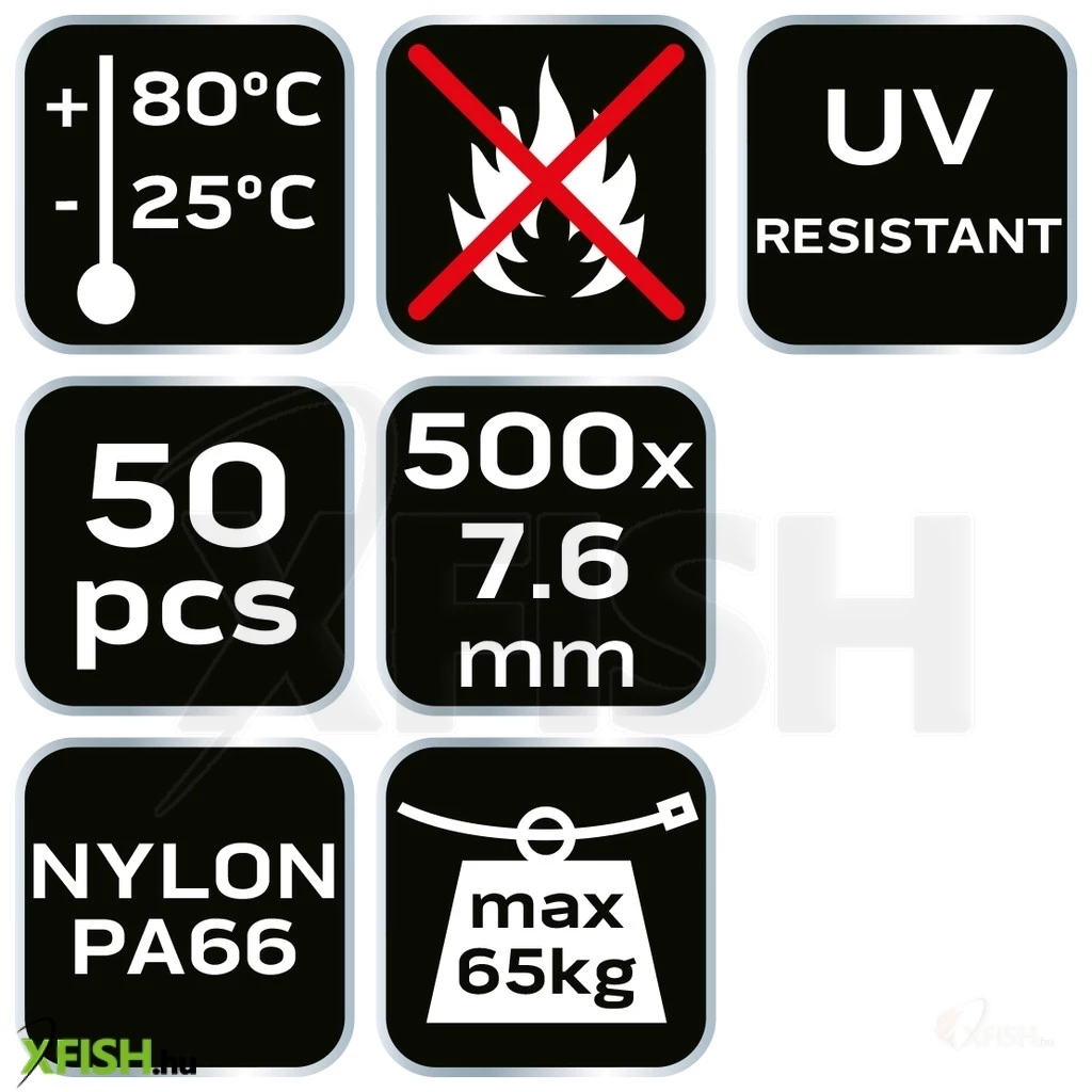 A kiváló minőségű anyagokból készült gyorskötözők ideálisak bármilyen ipari, háztartási vagy DIY projekt számára, ahol a tartós kábelrögzítés elengedhetetlen. A 7,6x500 mm-es méret elegendő flexibilitást és erőt biztosít, hogy nagyobb átmérőjű kötegeket is biztonsággal rögzítsen, ugyanakkor diszkrét megjelenést kölcsönöz bármely installációnak. A fekete szín tovább fokozza a termék strapabíróságát és esztétikai értékét, különösen olyan alkalmazásoknál, ahol a kábelek elrejtése vagy egyensúlyban tartása fontos.