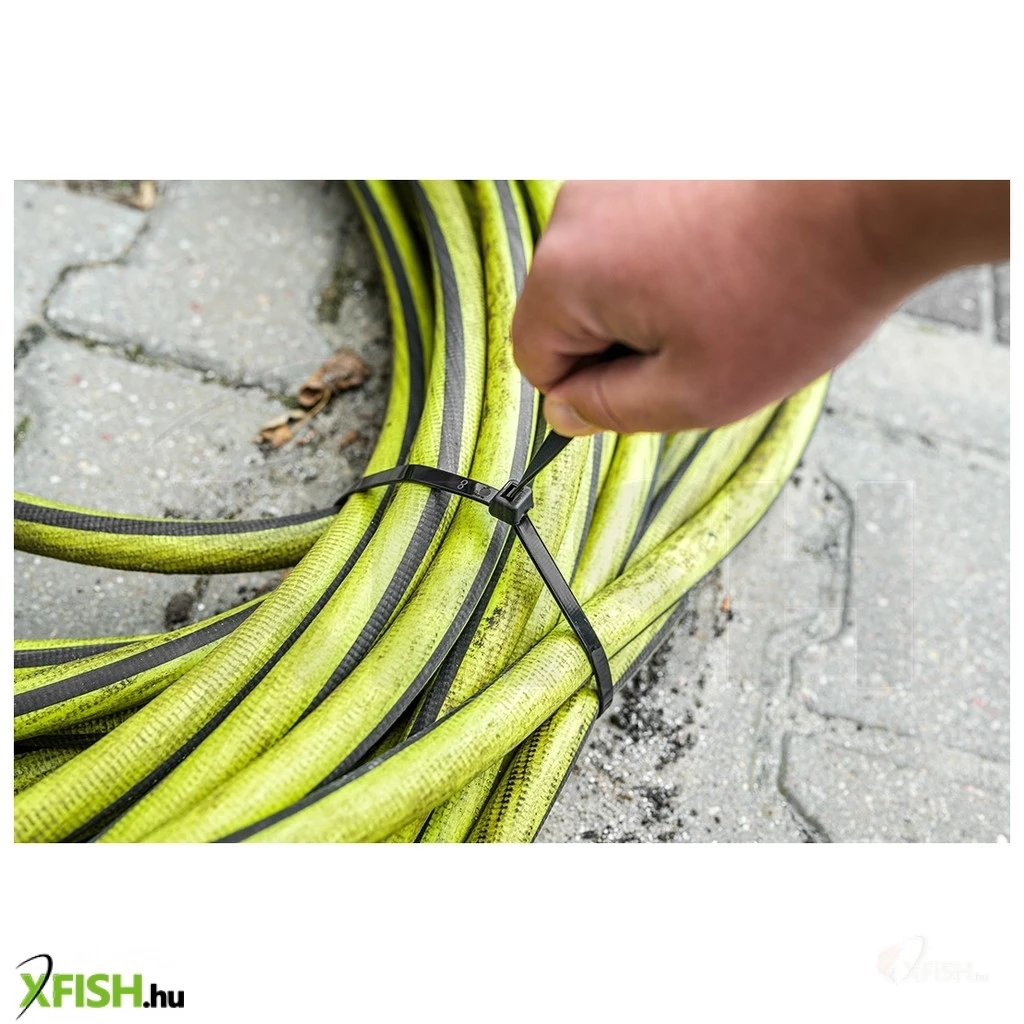 Ennek a gyorskötözőnek az extrém időjárási körülményekhez tervezett anyagösszetétele garantálja a hosszú élettartamot. Az UV-álló kivitel lehetővé teszi, hogy ellenálljon a napfény hatásainak, így a kültéri felhasználások során is megbízható megoldást jelent. A fekete szín által biztosított diszkrét megjelenés pedig beleolvad a legtöbb környezetbe, így nem zavaró esztétikai szempontból sem.