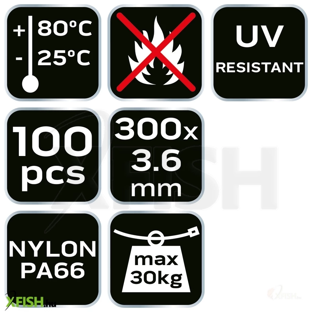 A 3,6x300mm méret tökéletes egyensúlyt biztosít a rugalmasság és a szilárdság között, lehetővé téve a különböző átmérőjű kábelek és egyéb elemek gyors és hatékony kötözését. Az egyszerű, de erős rögzítési mechanizmusnak köszönhetően a felhasználó gyorsan és könnyedén végezheti a munkát, akár professzionális alkalmazásban, akár hobbi célokra használja.