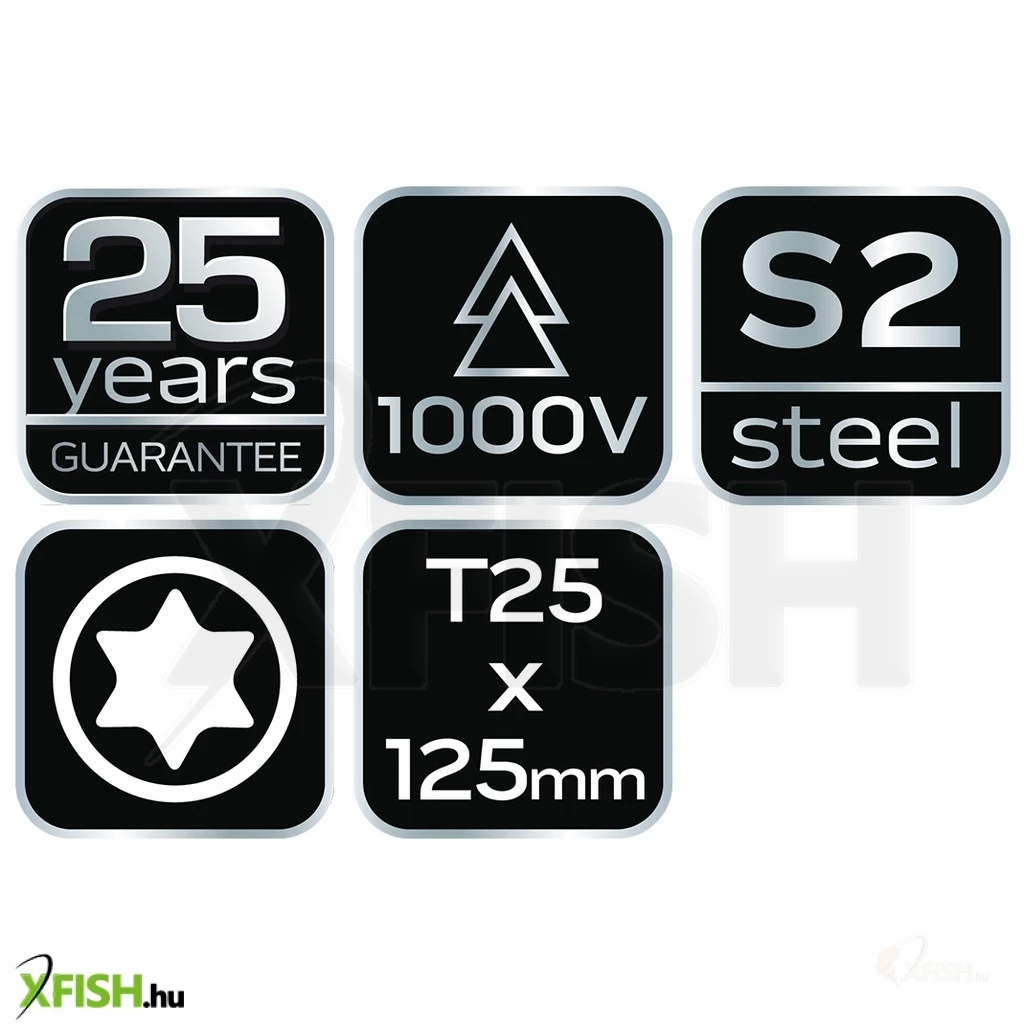 A T25 típusú fej garantálja a szoros illeszkedést a megfelelő csavarokkal, ezzel biztosítva a hatékony erőátvitelt és megkönnyítve a munkafolyamatot. A csavarhúzó szára 125 mm hosszú, ami lehetővé teszi a nehezebben hozzáférhető helyek elérését is, anélkül, hogy a pontosság vagy a kontroll csorbát szenvedne. Az eszköz anyagát tekintve tartós és ellenálló, így hosszú élettartamra számíthatunk mindennapos használat mellett is.